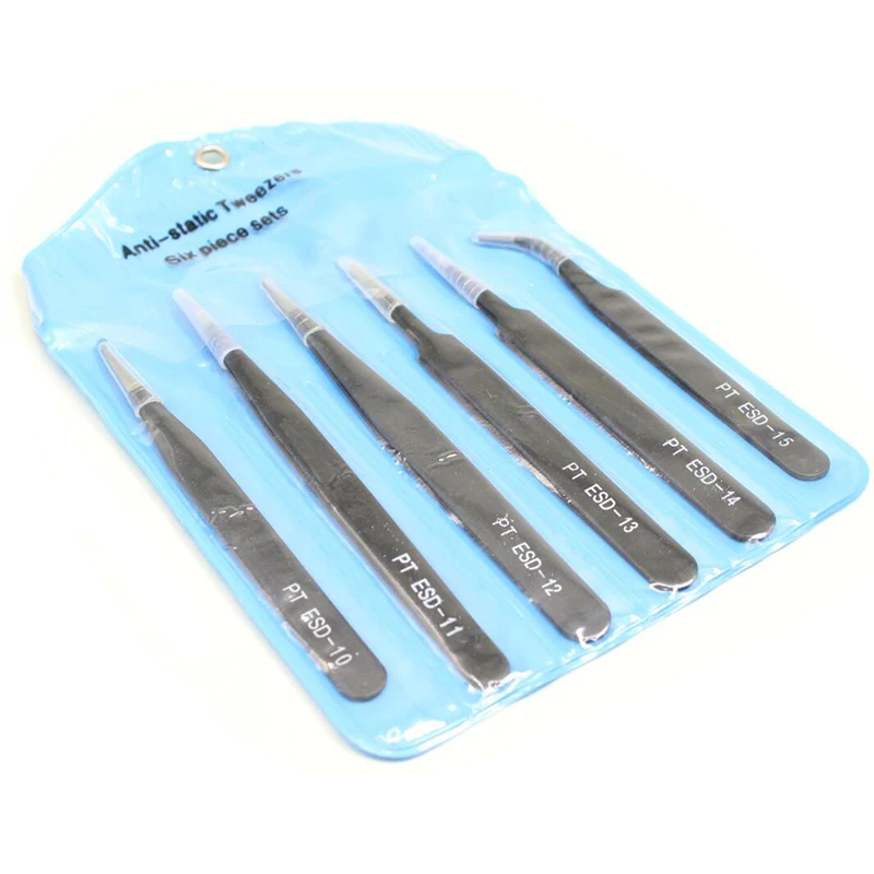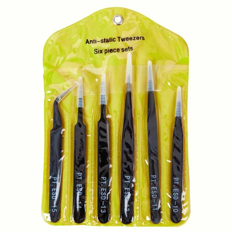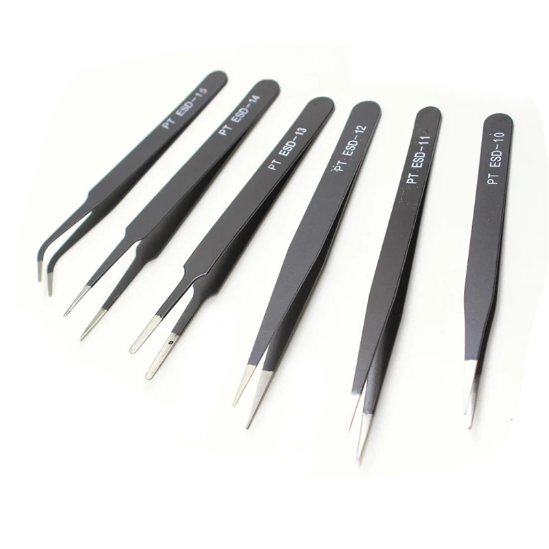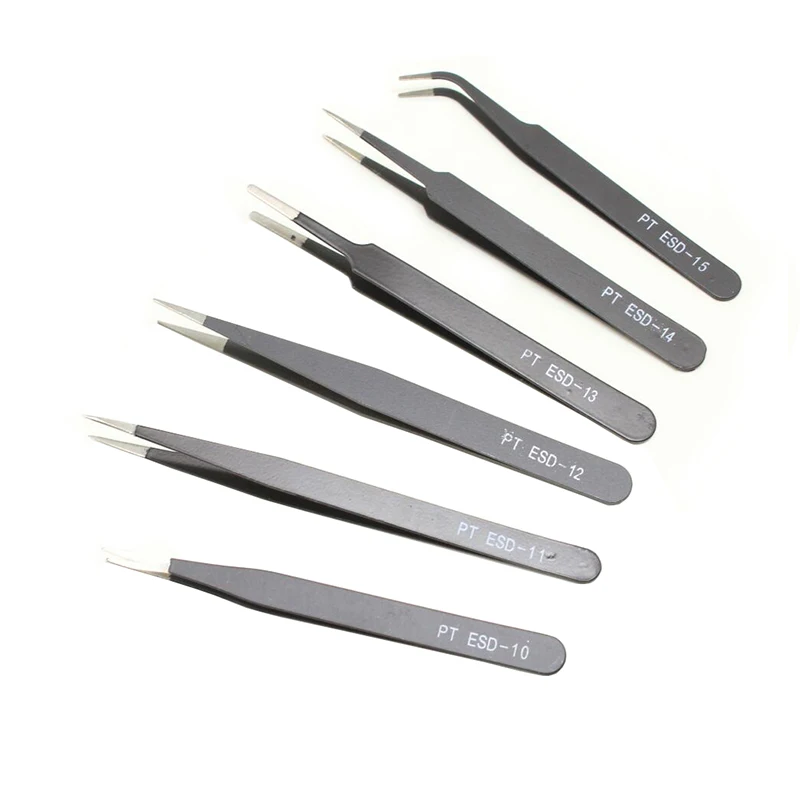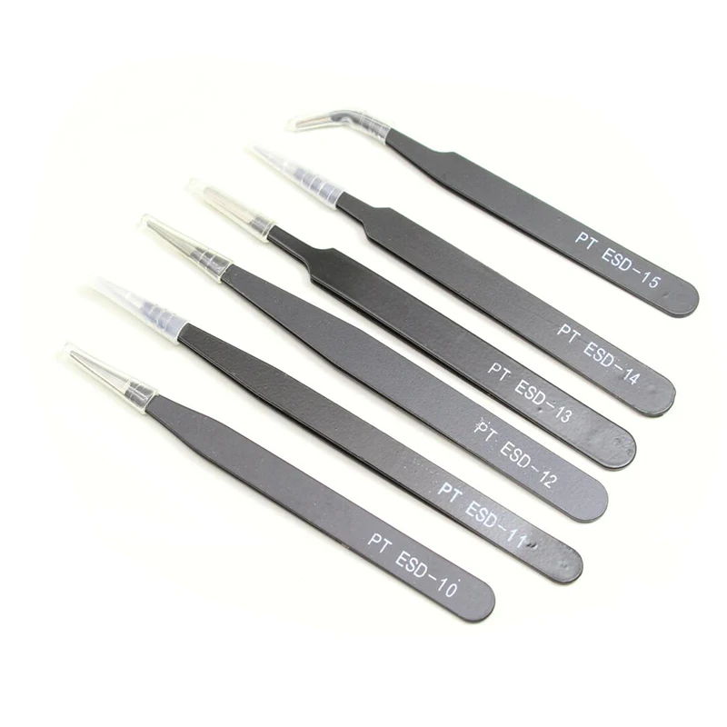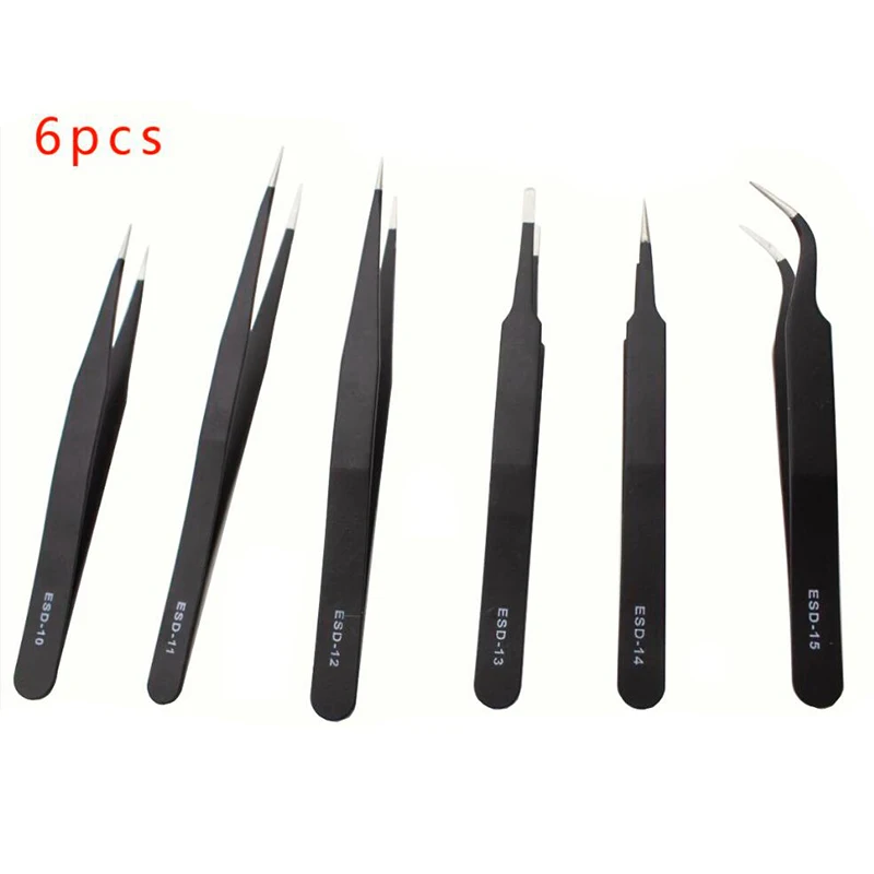 Электронные щипцы, антистатические щипцы ESD, набор пинцетов, прямые изогнутые электронные инструменты, ремонт и обслуживание, 6 шт.