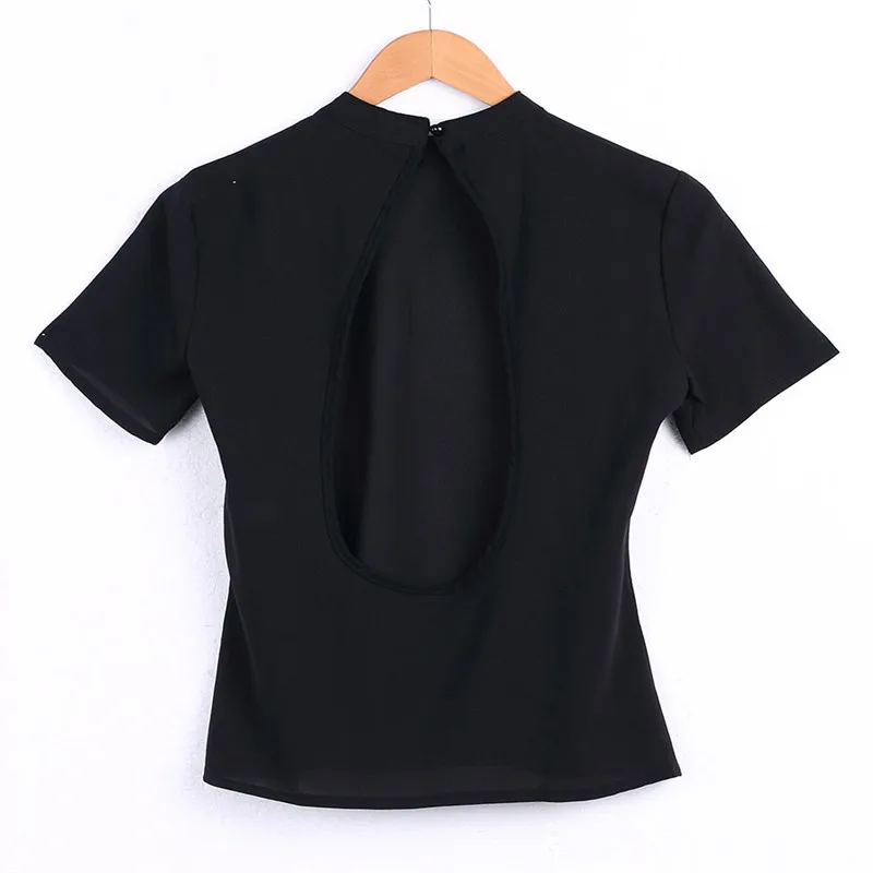 Модная сексуальная женская футболка, повседневные облегающие топы, футболка с открытой спиной, женские свободные футболки с коротким рукавом, летняя черная футболка