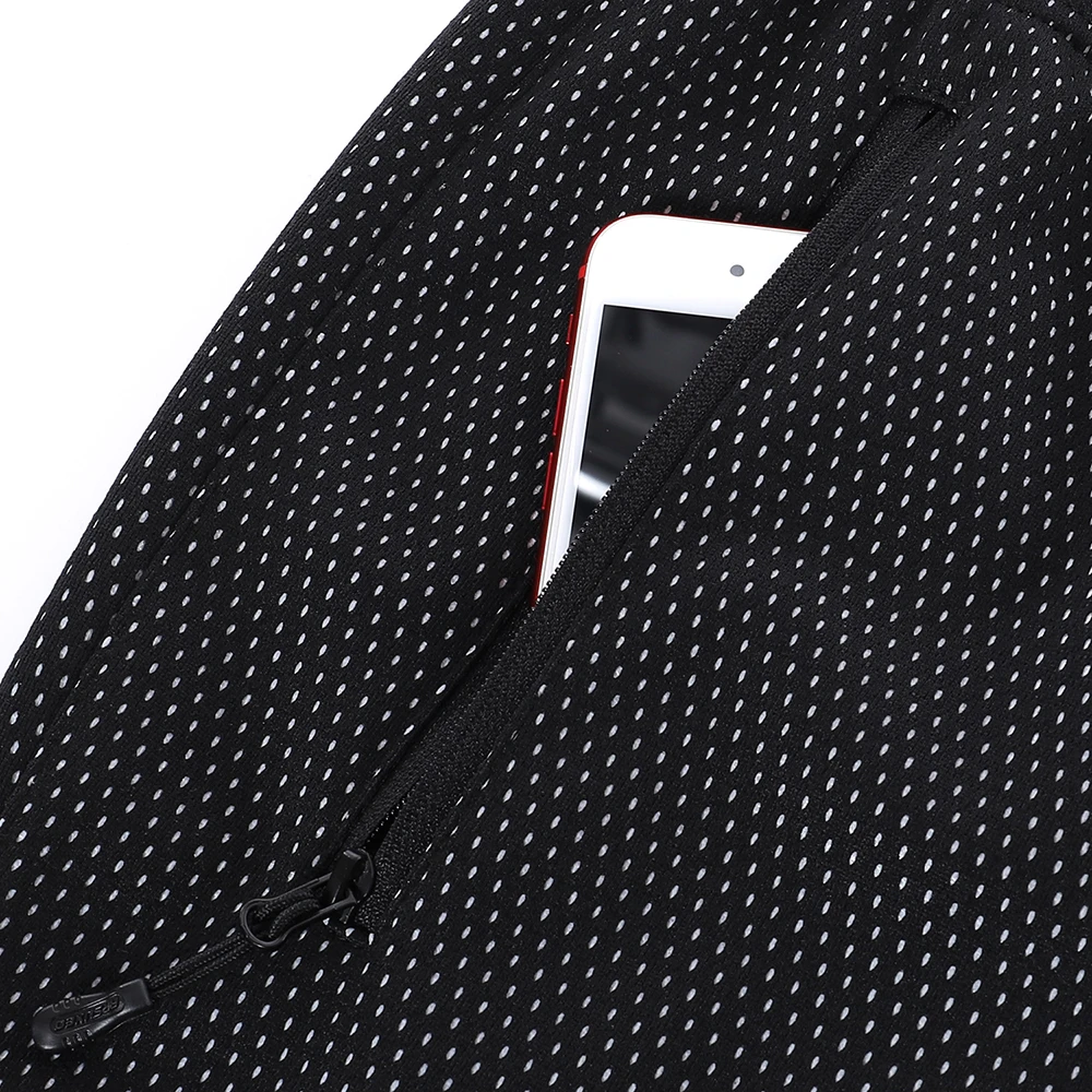 Два кармана на молнии для хранения. Застежка-молния на ногу с отражающей полоской обеспечивает безопасность в темноте.