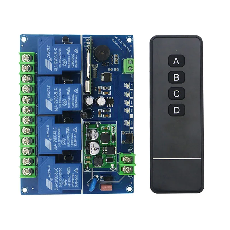 Пульт дистанционного управления с реле 30A, вы можете загрузить мощные приборы, получая способ обучения типа одночипного декодирования, вы можете узнать более одного пульта дистанционного управления, И каждый пульт дистанционного управления, все ключи можно узнать, каждый пульт дистанционного управления может управлять несколькими переключателями, Также может быть ряд дистанционного управления для управления переключателем, простое и Гибкое сочетание любой комбинации дистанционного управления каждой кнопкой, чтобы узнать различные способы работы, чтобы избежать прохождения крышки, чтобы переключить выход неприятностей, прост в использовании, подходит для нескольких областей многократного использования, Выходной сигнал переключателя, прост в установке, удобен.