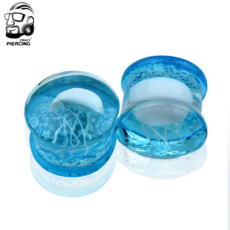 Расширитель уха светится в темноте, стеклянный, бижутерия для пирсинга (туннелей), для белых медуз