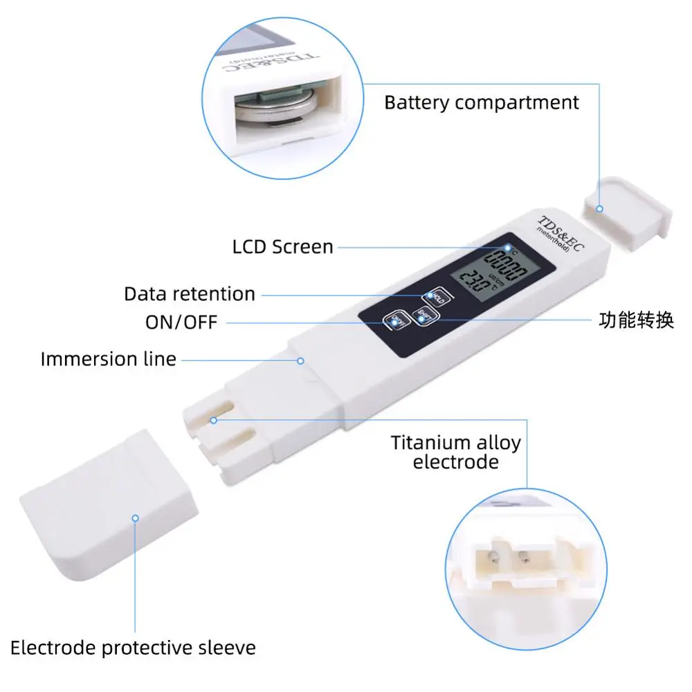 Тестер проводимости yieryi 3 в 1, Измеритель проводимости Воды, функция измерения температуры 0-5000ppm, EC метр, скидка 30%