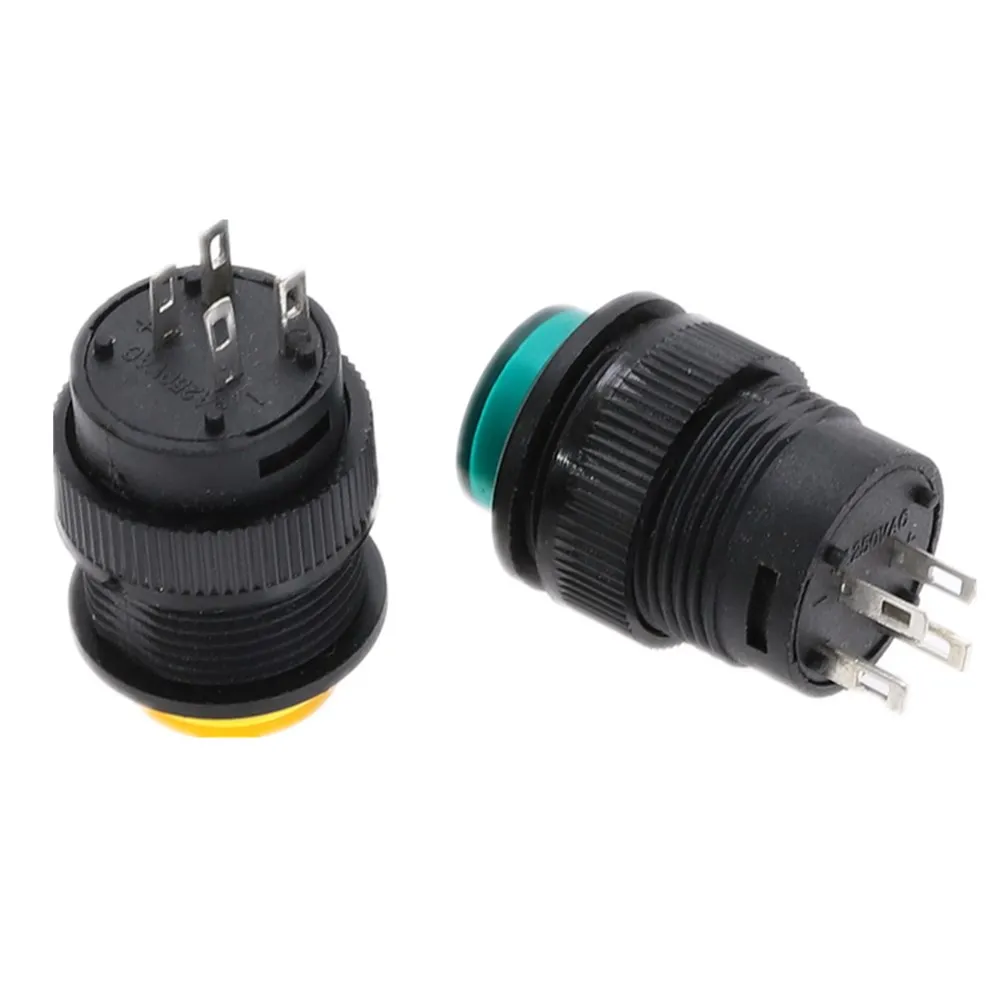 Светодиодсветодиодный лампа мгновенного действия, 5 шт., 4 контакта, 16 мм, белый, красный, синий, зеленый, желтый, круглый переключатель кнопка сброса, 3A250VAC