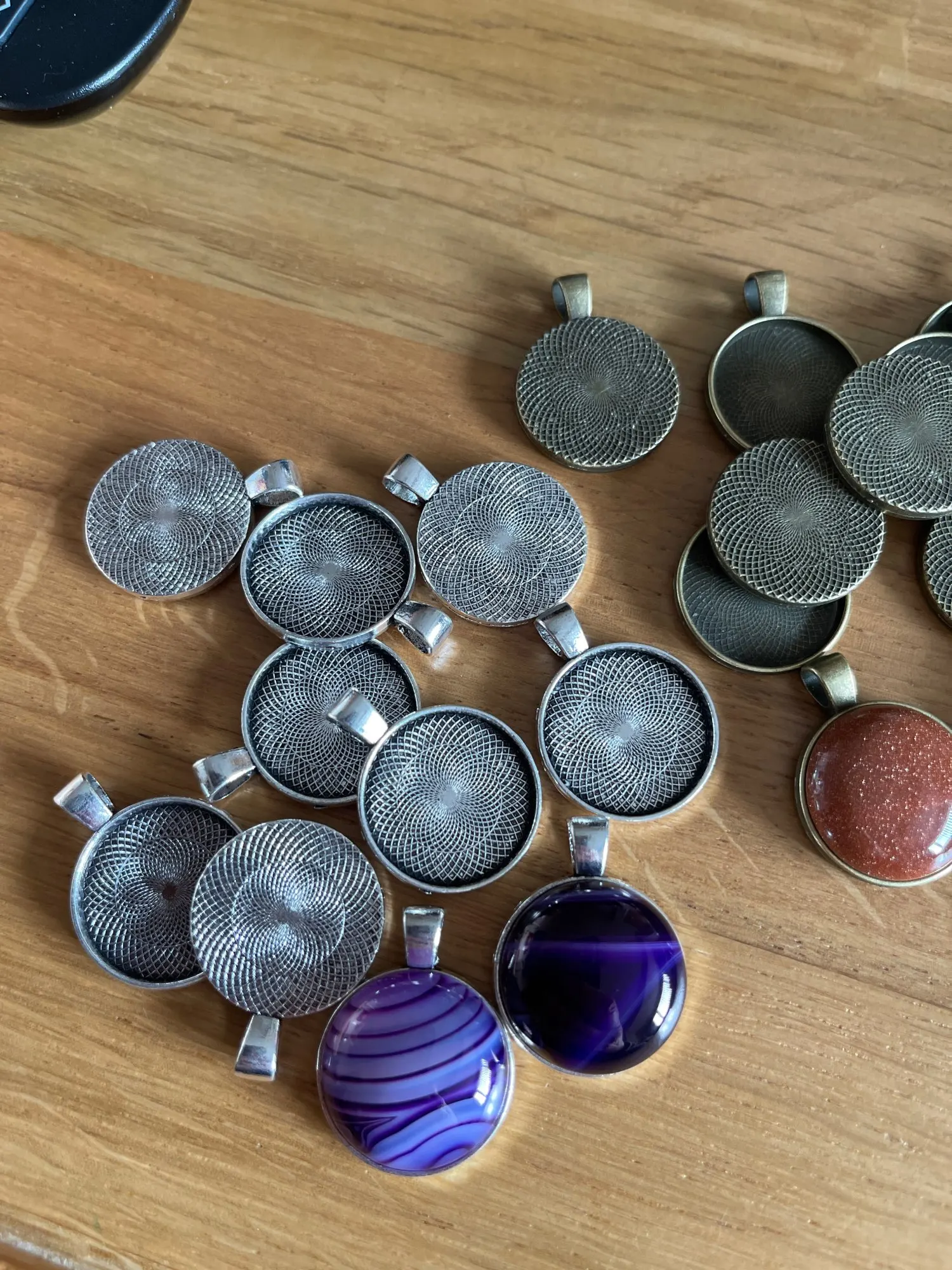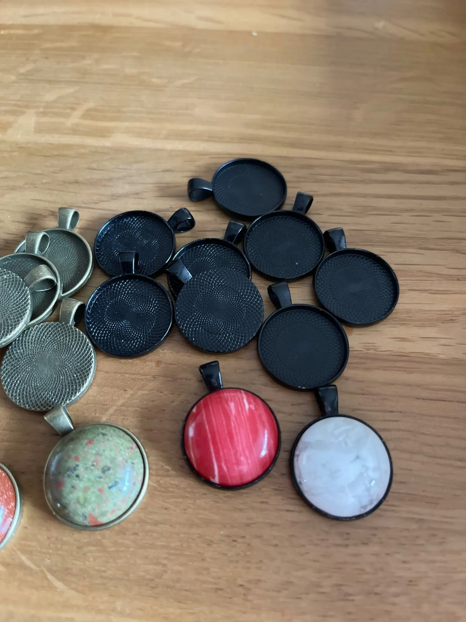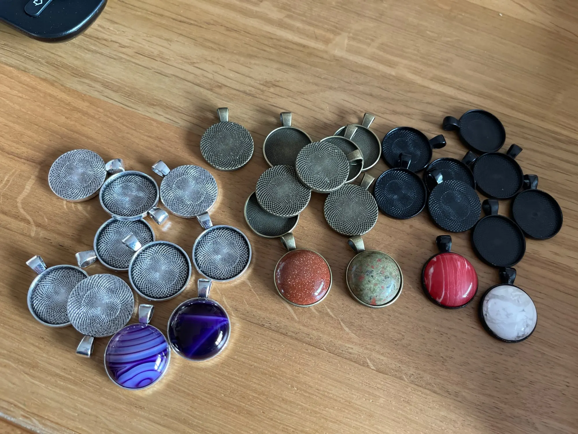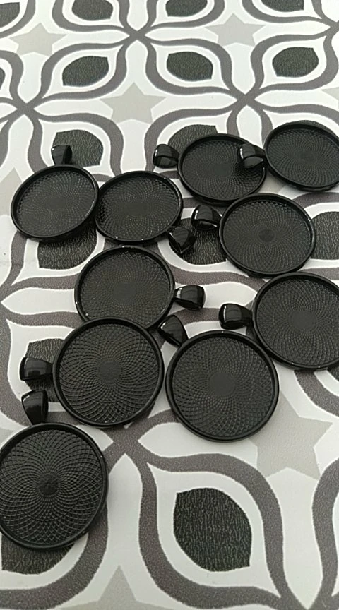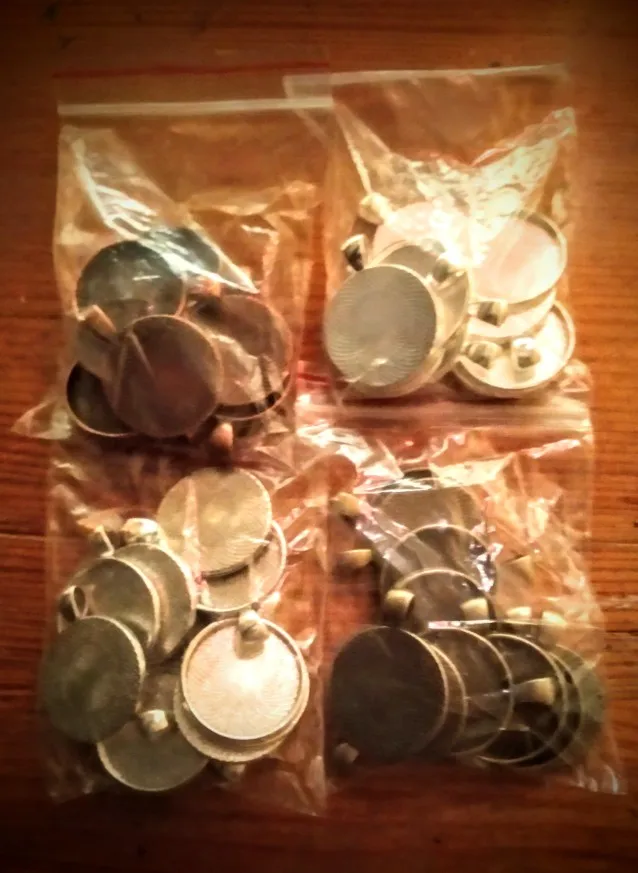 Глубина бортиков у черных коннекторов разв в три меньше, чем у кулонов. На одном из кулонов какое-то странное пятно внутри, но для моих целей не критично. Доставлено на отделение Укрпочты.