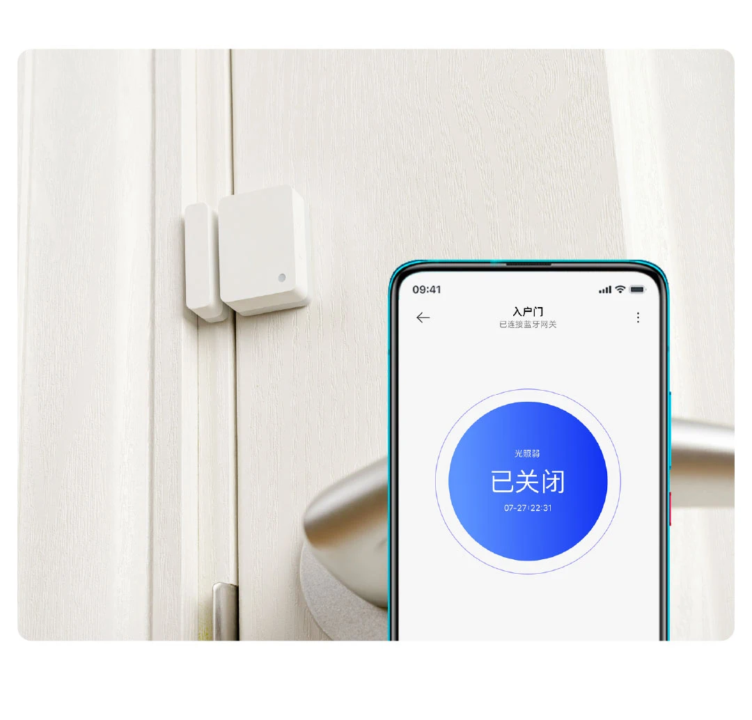 * Для воплощения сцены открывания двери и освещения ночью, необходимо создать интеллектуальную сцену через приложение Mijia и использовать ее со шлюзом Bluetooth или интеллектуальными продуктами со встроенной функцией шлюза Bluetooth.