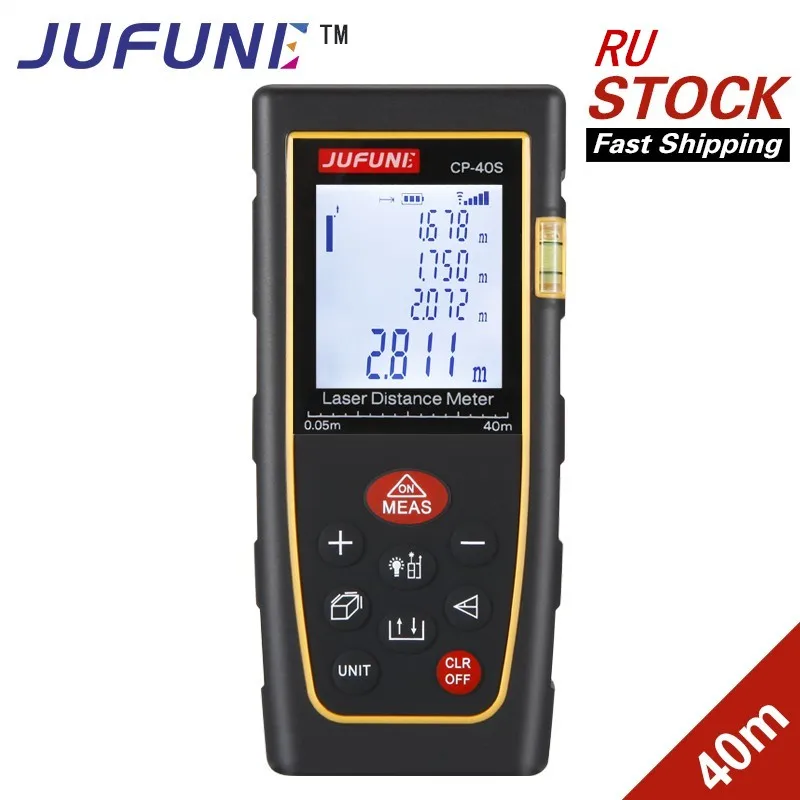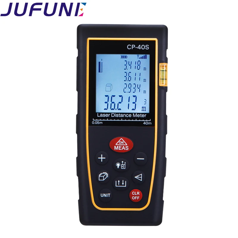 Это лазерное измерение расстояния использует лазерную технологию для точного измерения расстояния, площади и объема, быстро и удобно. Он имеет широкий диапазон измерения 40 м высокая точность до ± 1,5 мм. Кроме того, данный измеритель может использовать для непрямого измерения расстояний или длин по пифагору. Этот измеритель также имеет различные функции, включая непрерывное измерение, функции сложения/вычитания и максимальное/мин измерение. Другие основные особенности, включая 20 запоминающих данные, переключаемые блоки (метр, дюйм, фут) и задний светильник LCD с многовиточным дисплеем.