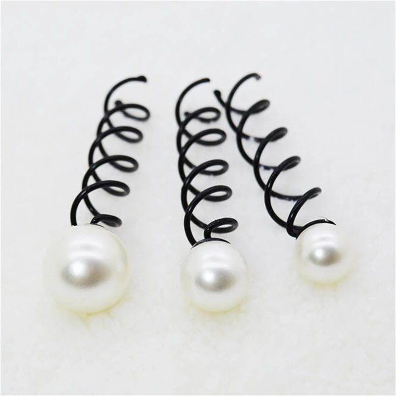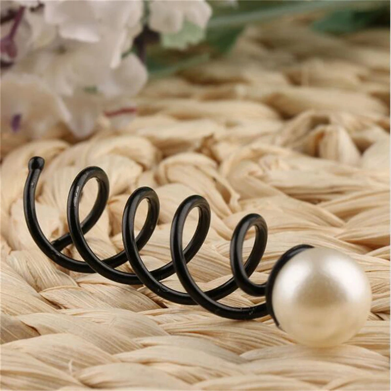 Заколка для волос с жемчугом и черной спиралью для женщин и девочек...