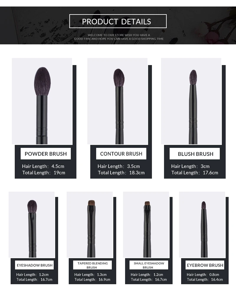 Набор кисточек из козьей шерсти для макияжа (7 шт.)