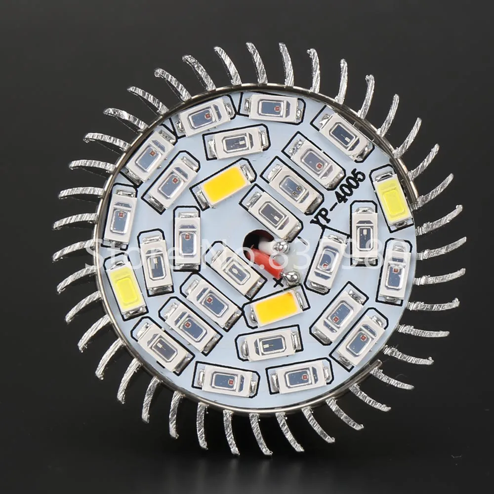 Характеристики: Новейший светодиодный просветильник Тор Epistar 28 SMD5730Комфортная и яркая среда освещенияОсобенности: увеличивает урожайность и уменьшает круг ростаДля: овощей гидропоники, трав и цветущих растенийТип цоколя: E27 / E14 / GU10Мощность: 28 ВтНапряжение: AC85-265VГарантия: 3 годаСрок службы> 50000 часовУсловия хранения: -40 ~ 75 градусовРабочая температура: <50 °C Размер:50 мм x 66 ммКоличество светодиодов: 28 шт.:15 красный&7 синий&2 белых&2 теплых&1IR&1UV Синий (6500 нм, Помогает растениям расти); Красный (нм, помогает цветению растений); Белый (ККельвин обеспечивает заполнение всех отсутствующих спектров и добавление Люкс); Теплый (3500KОбеспечивает энергию, способствует фотосинтезу растений); ИКНм; УФ нм;