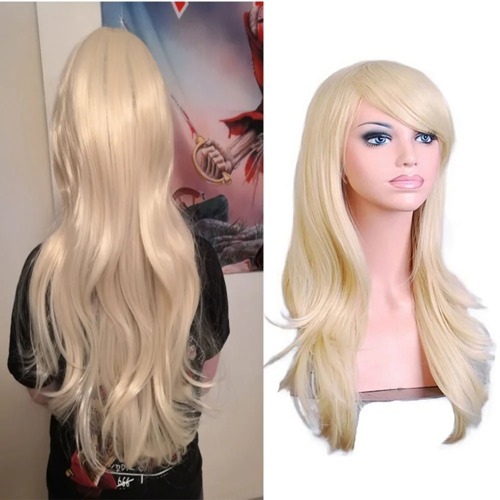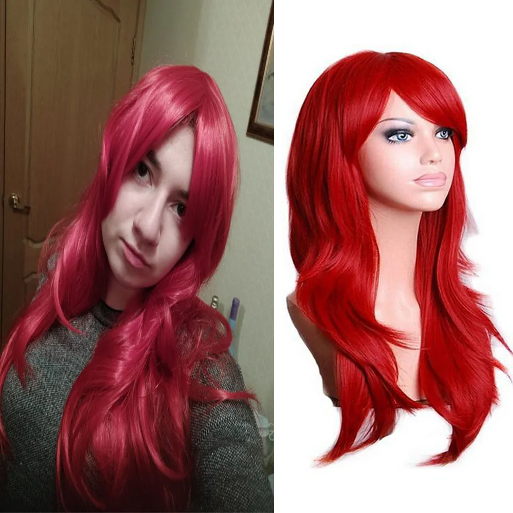 Парик для косплея QQXCAIW, длинный волнистый, красный, зеленый, фиолетовый, розовый, черный, синий, серебристый, серый, блонд, коричневый, 70 см, синтетические волосы