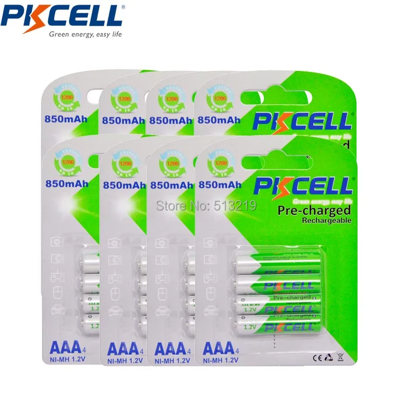 32 шт. * батарейки PKCELL AAA предзаряженный никель-металл-гидридного 1,2 V 850 мАч, металл-гидридных или никель 3A Перезаряжаемые аккумуляторы емкостью до 1000 мАч, Ёмкость цикл 1200 раз