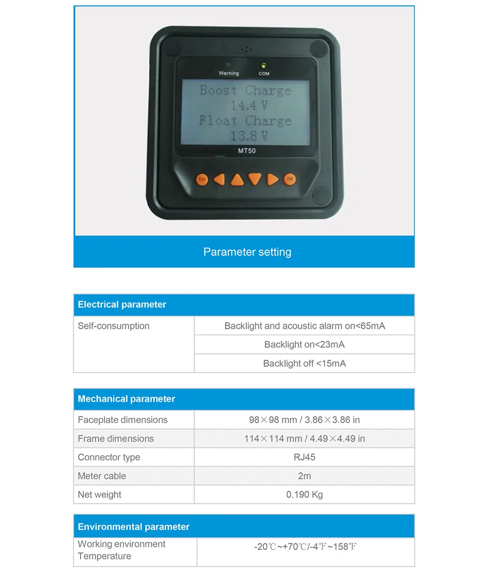 Дистанционный измеритель MT50 с ЖК-дисплеем для EPsolar EPEVER, кон...