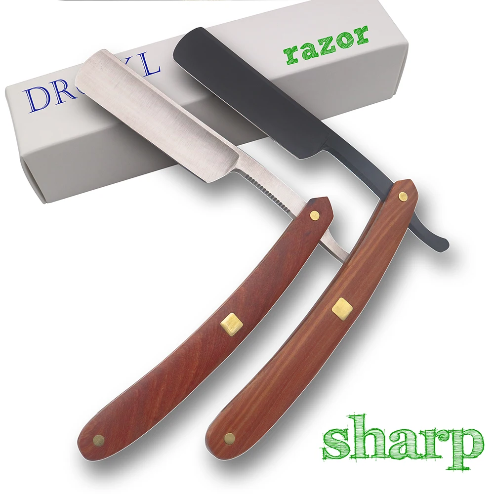 Ручная бритва DRGSKL с деревянной ручкой, сверхострая, Классическая бритва из нержавеющей стали 440C, бритва для волос