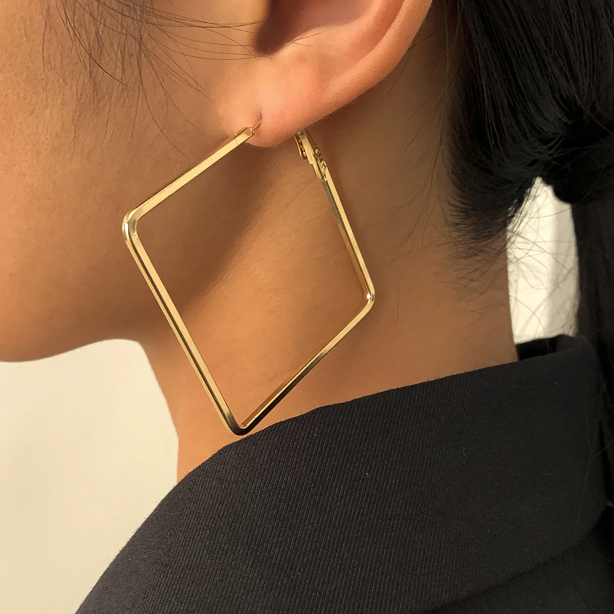 Европейские большие квадратные серьги-кольца Hyperbole для женщин, ювелирные изделия геометрической формы, бижутерия