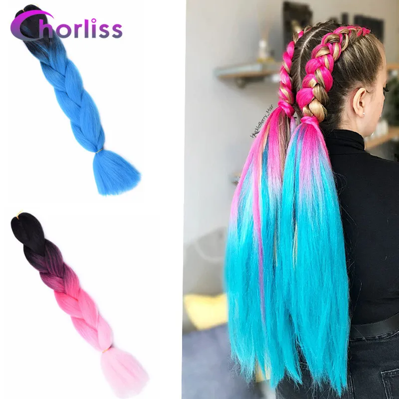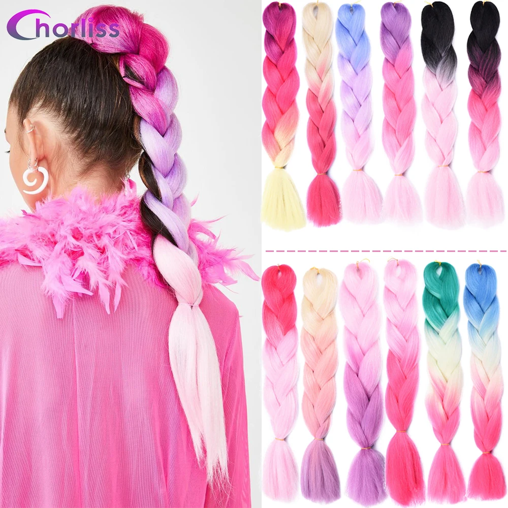 Chorliss 24 дюйма Джамбо косы синтетические вязаные для наращивания Омбре плетение волос Вязание крючком косы радуги Розовый Серый цвет 100 г