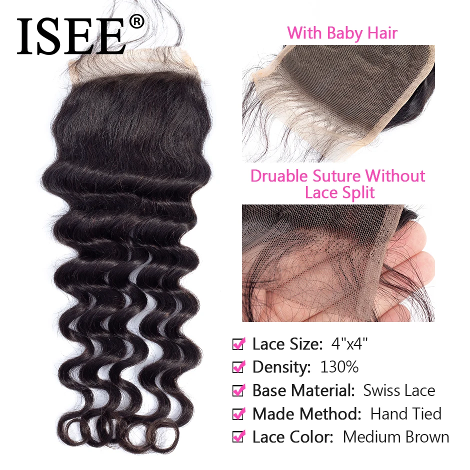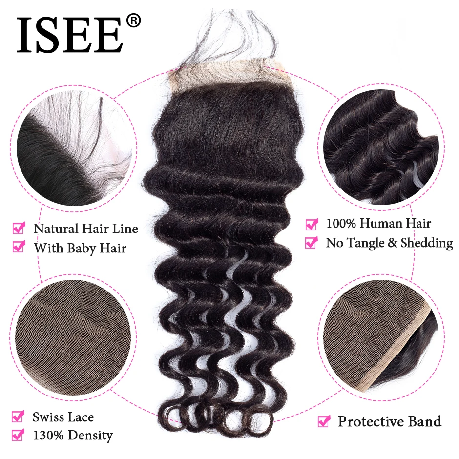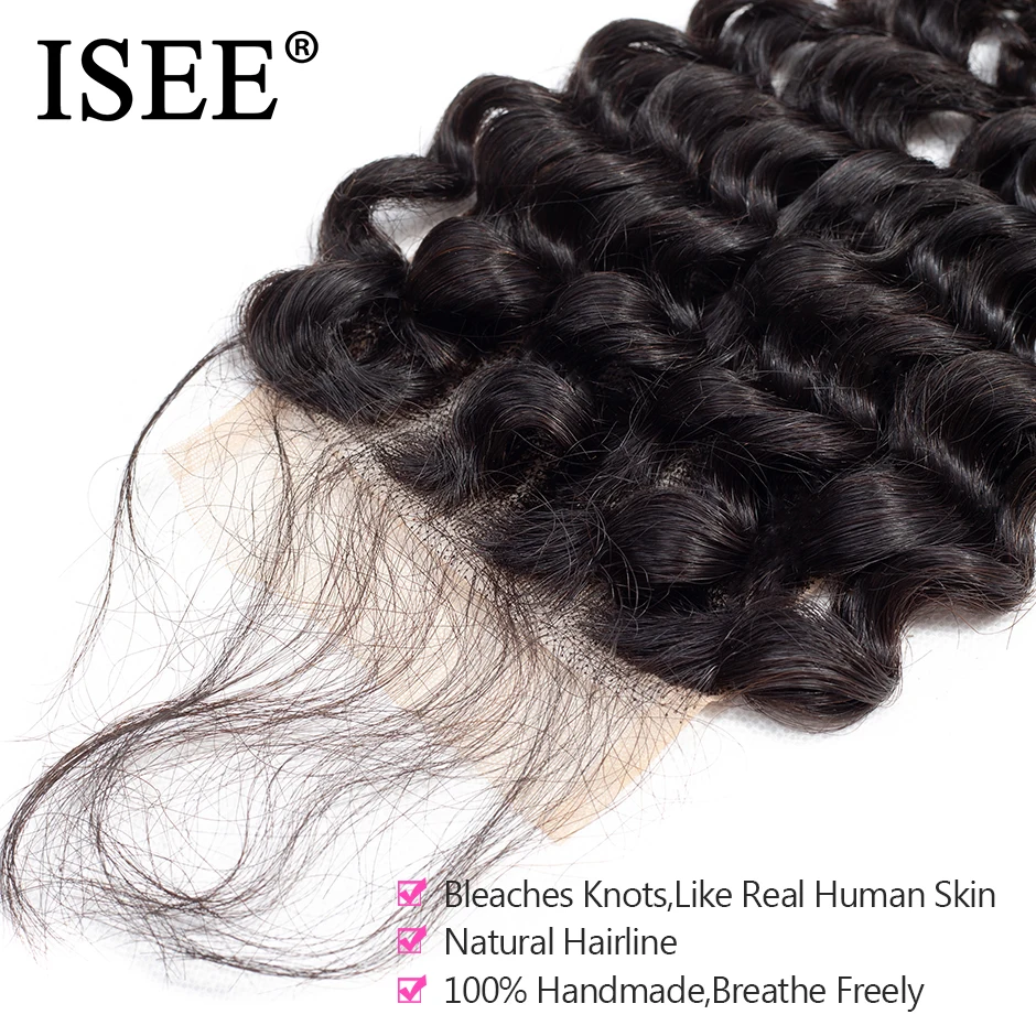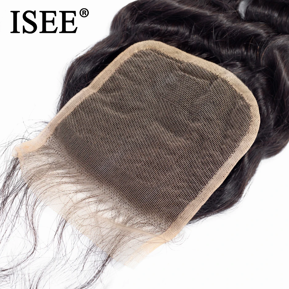 Волосы ISEE, бразильские, свободные, с глубоким закрытием, Remy, бесплатная часть, 4 "* 4", швейцарские, на основе кружева, можно покрасить, бесплатная доставка, натуральный цвет