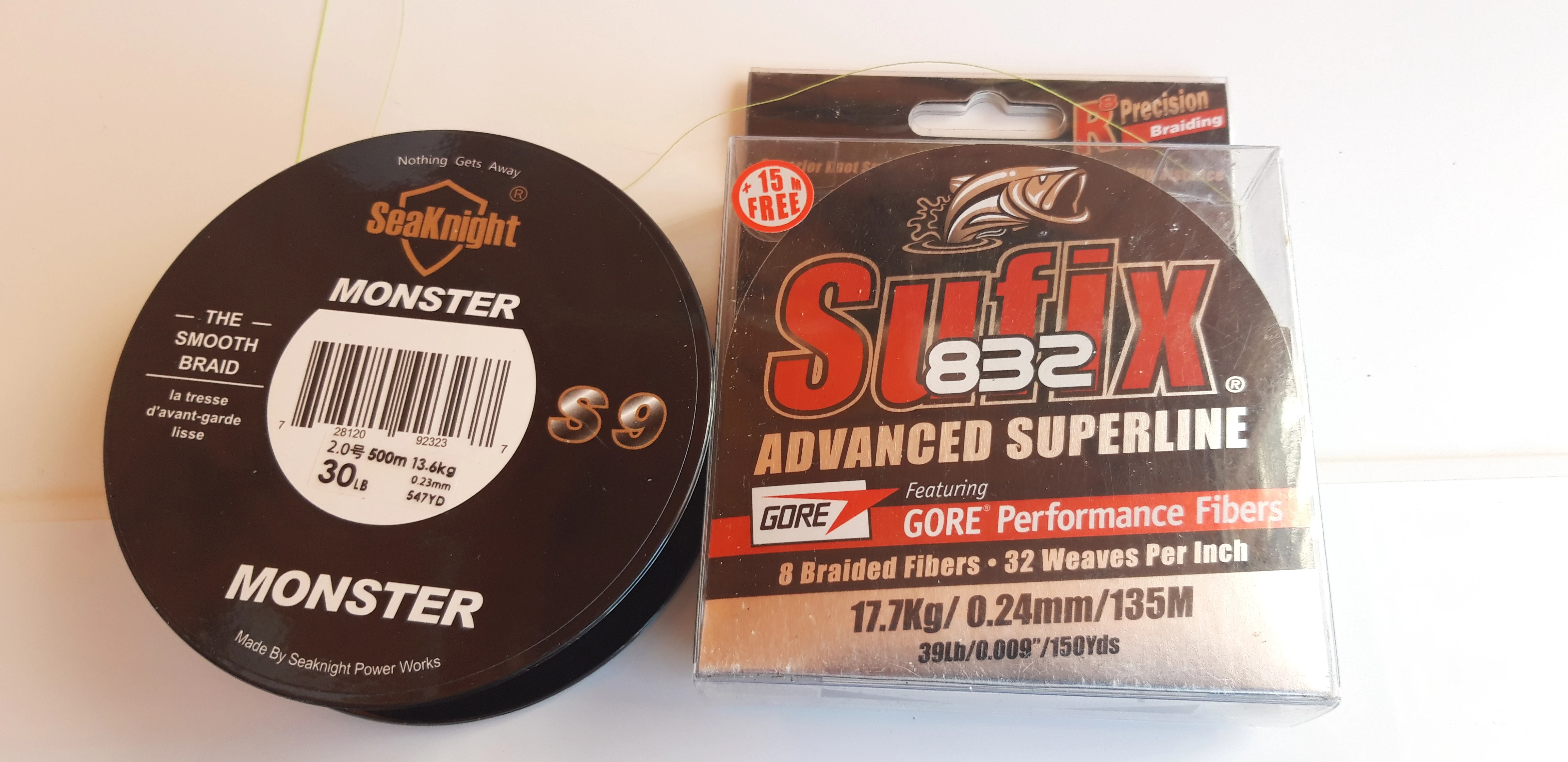 Плетенка пришла за две недели.Упакована хорошо.Не знаю,будет ли видно на фото внизу,но сравнивал ее с плетенкой Sufix 832.которую брал в Ф магазин,и которую использую давно.Диаметр у Sufix -0.24 мм,у SeaKnight-0.23.SeaKnight-однозначно более круглая и скользкая,на разрыв выдержала уверенно 9кг.,на 10кг.порвалась.Если видно на фото,то диаметры примерно одинаковые,что радует.Вообще,первое впечатление от Monster S9 хорошее,но на воде не пробовал,зима.На фото зеленого цвета Monster.а более желтого Sufix.