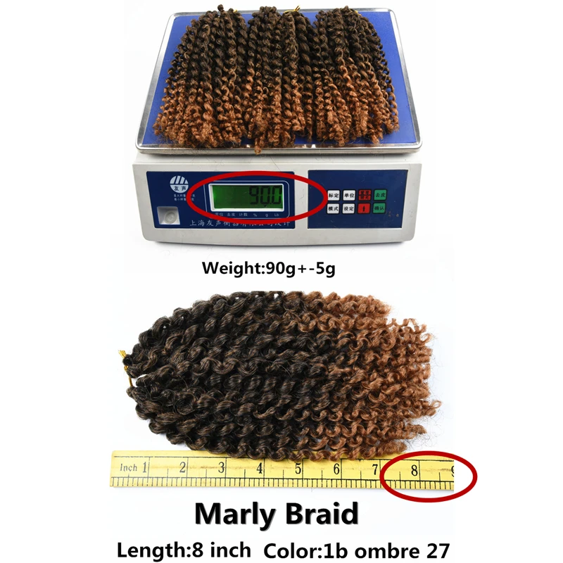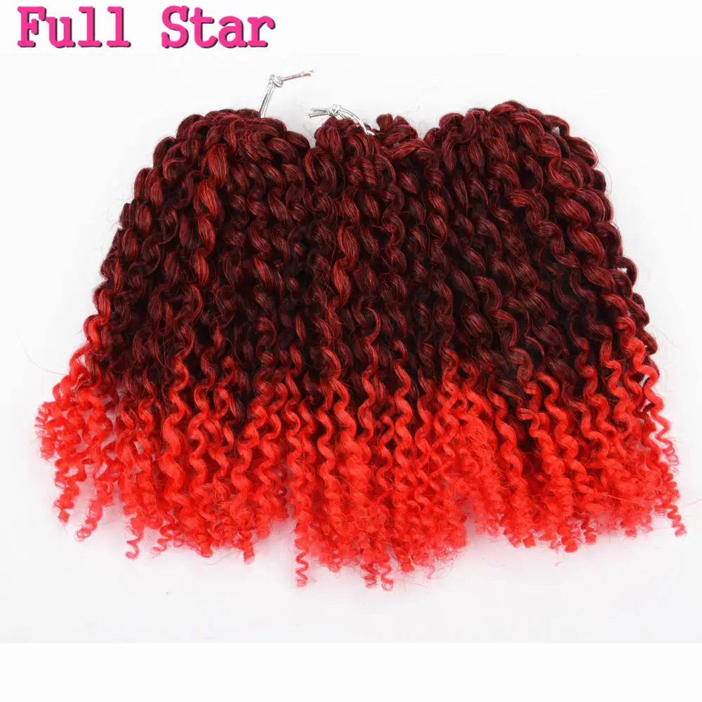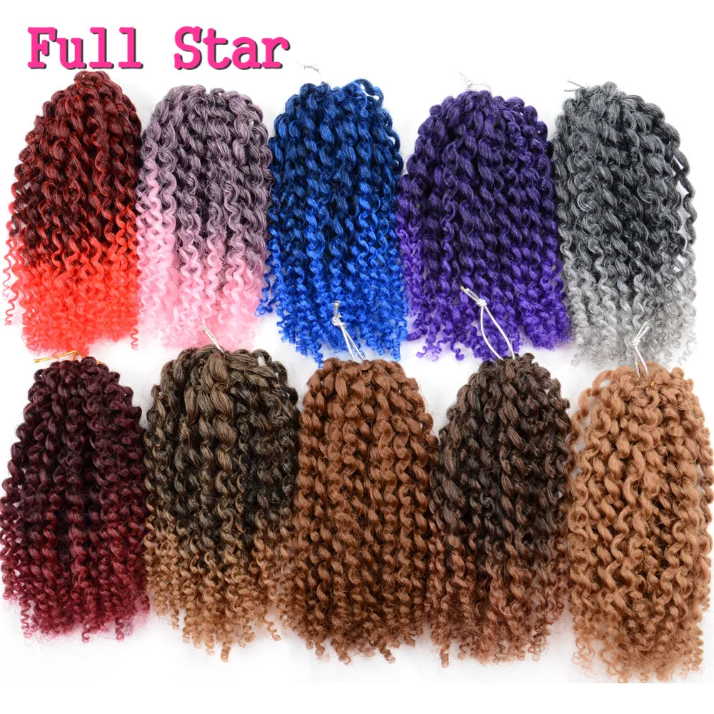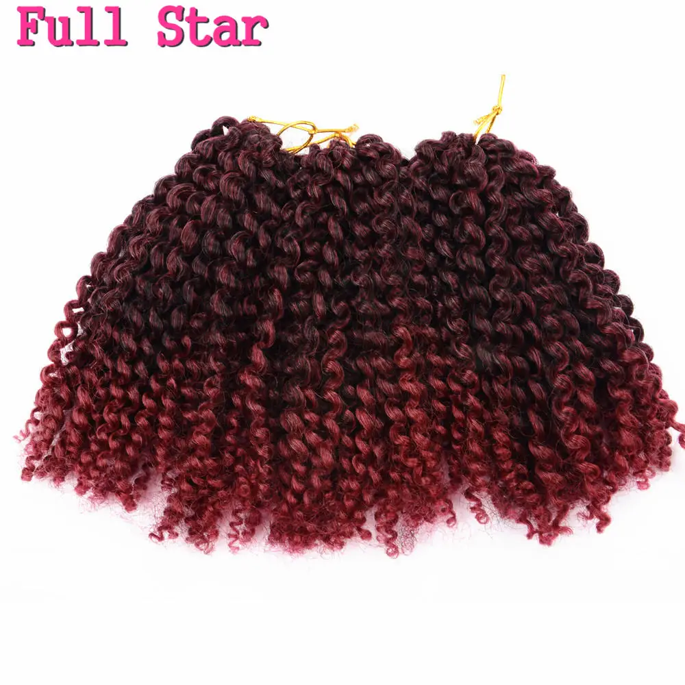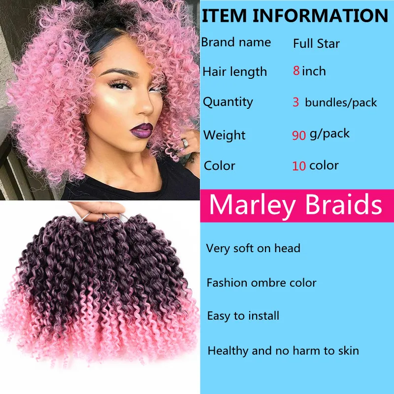 Полная звезда Марли Волосы косички 8 "3 шт.лот 90 г Черный Омбре коричневый жучок розовый красный цвет закрученные синтетические волосы крючком