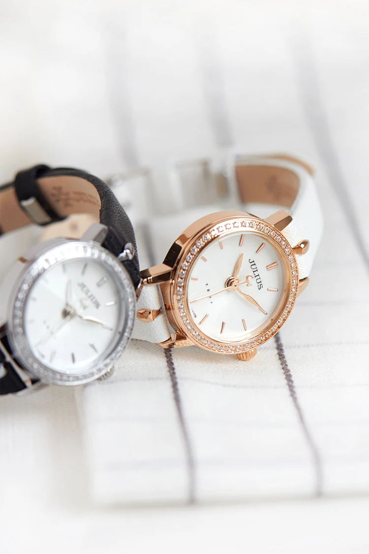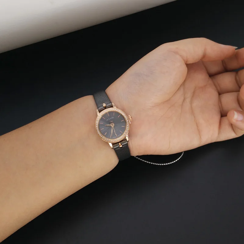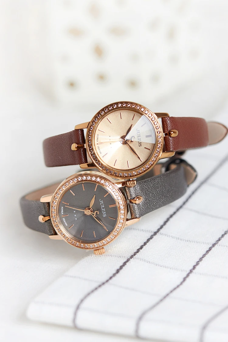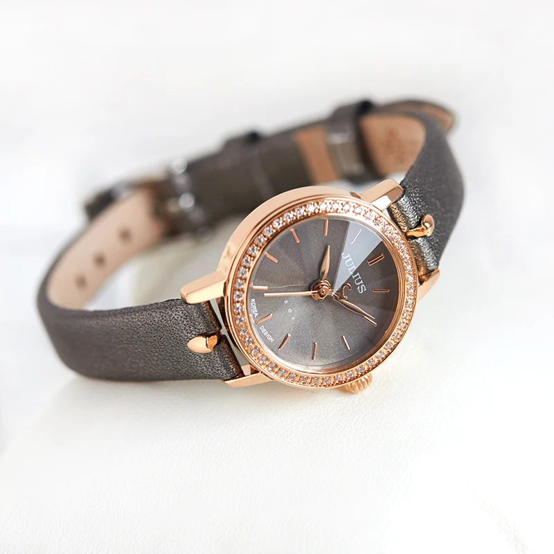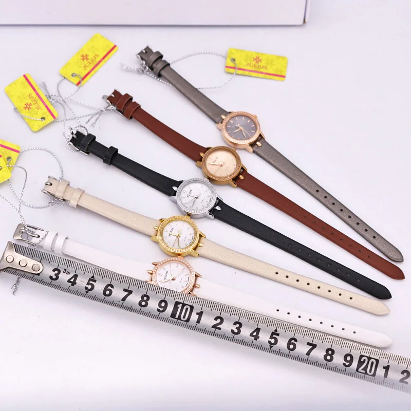 Часы женские кварцевые в японском стиле, изящные модные маленькие часы с закрепкой-крапаном, подарок для девушки из натуральной кожи на день рождения, в коробке с надписью Julius