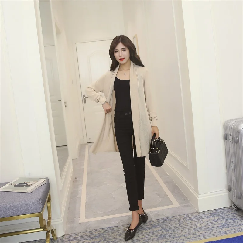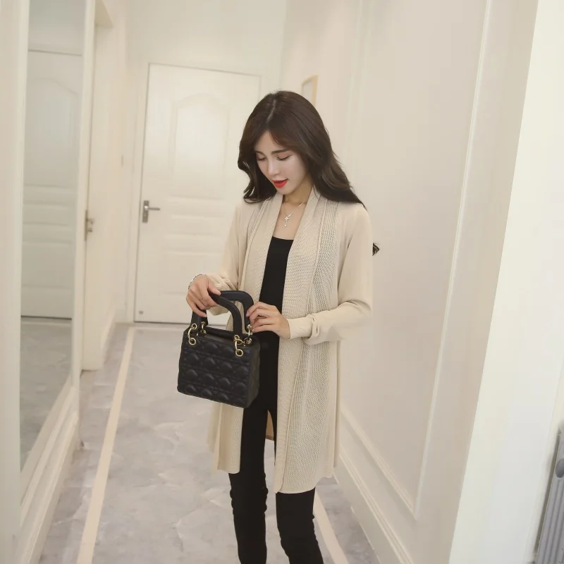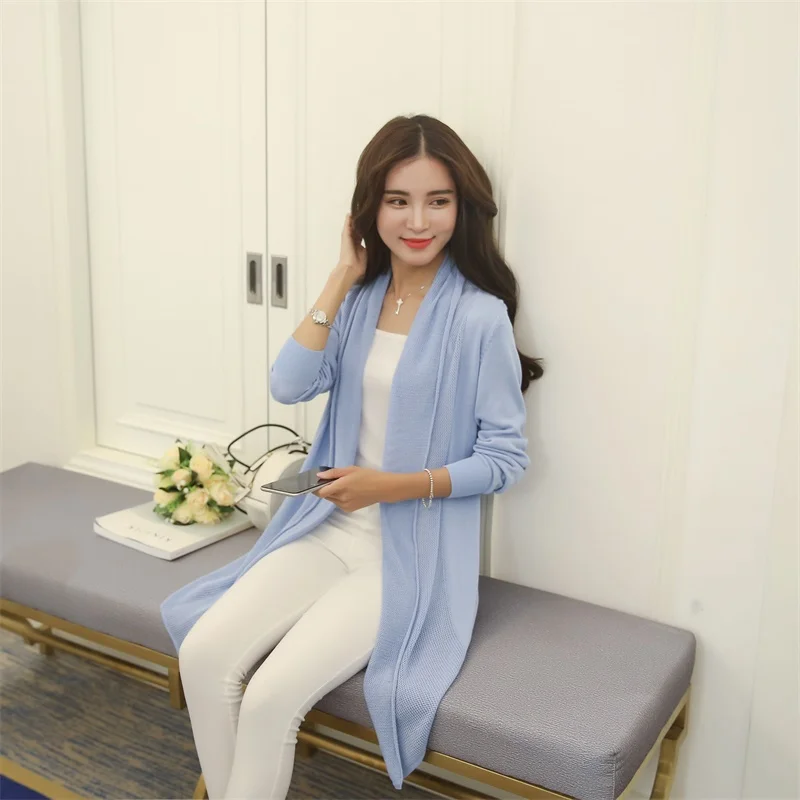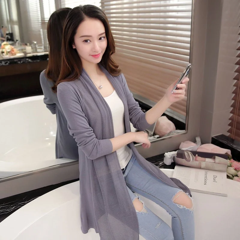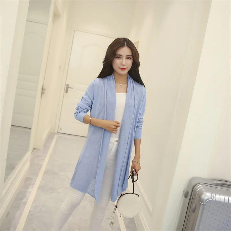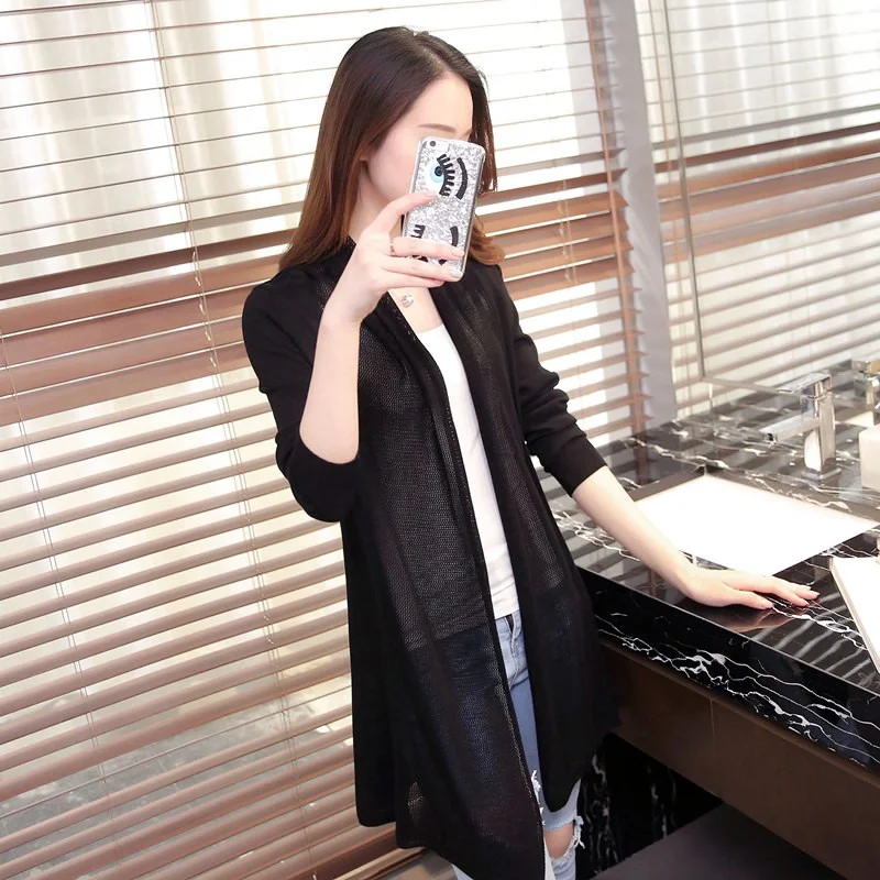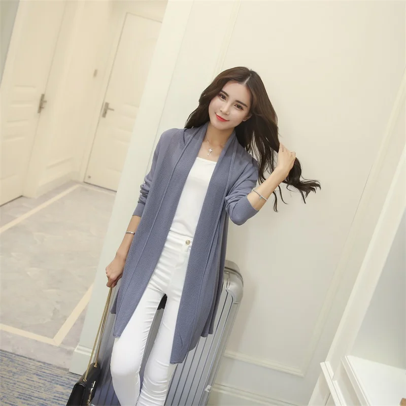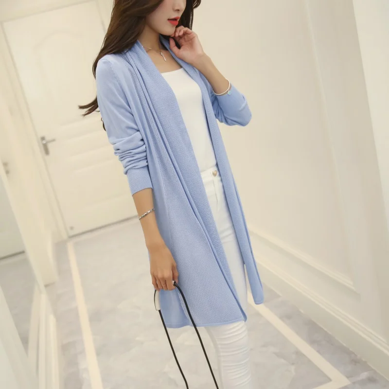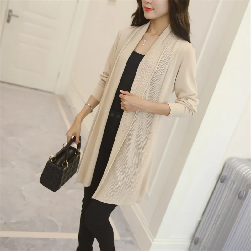Женский свободный свитер средней длины, Кардиган с длинным рукавом, тонкая верхняя одежда, весна-лето 2021