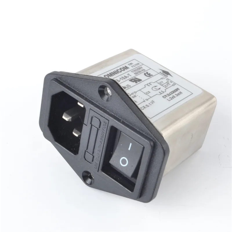 10 А фильтр электромагнитных помех с клавишным переключателем и разъемом для розетки