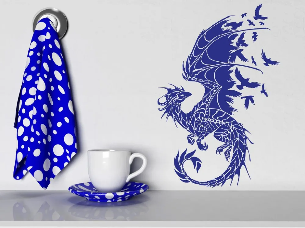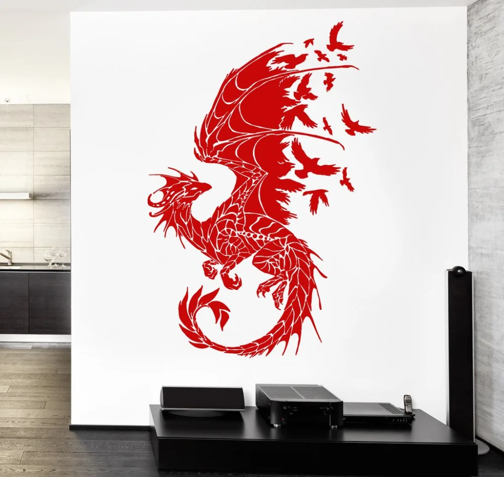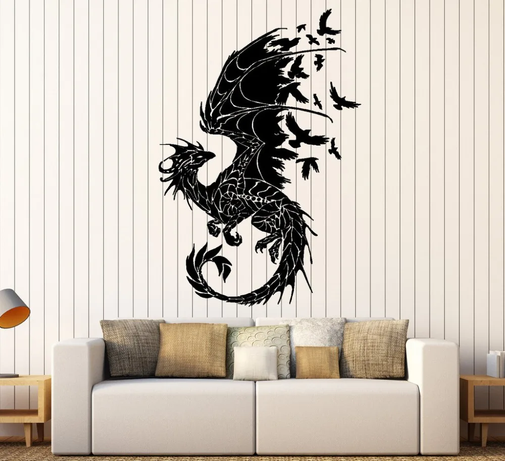 Виниловая наклейка на стену с изображением дракона, Сказочная Готическая абстрактная наклейка, декор для гостиной, SA152, наклейки на стену с изображением птиц