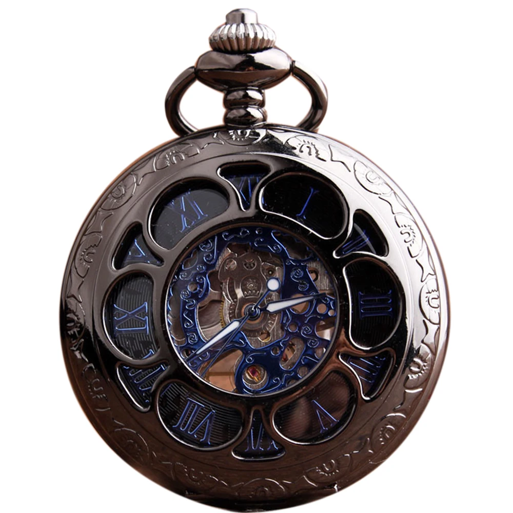 Винтажные классические черные карманные часы в стиле стимпанк, мужские, женские Автоматические Механические карманные часы из нержавеющей стали, бесплатная доставка