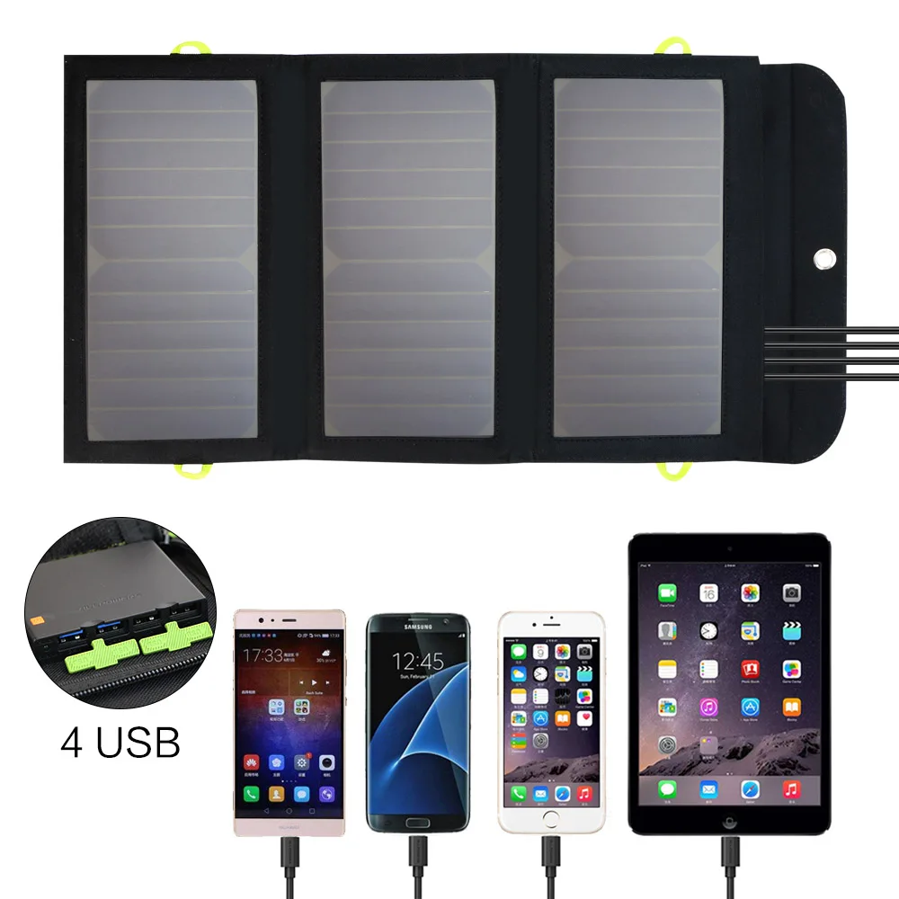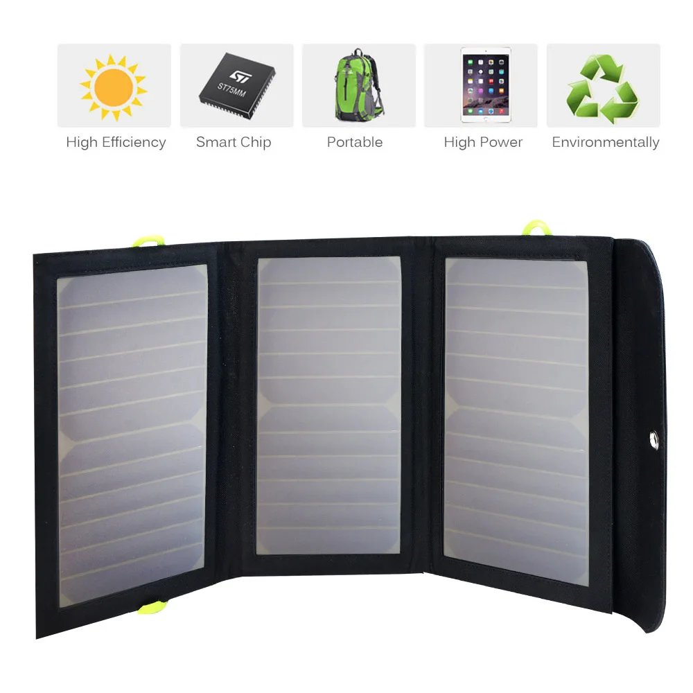 * Встроенный аккумуляторЭта модель имеет все преимущества ALLPOWERS высокой эффективности солнечных зарядных устройств. Другой, эта новая модель встроена в настоящий аккумулятор 10000 мАч. Вы можете хранить питание в солнечный день, а затем использовать его в ночное время или в дождливый день. Конечно, также вы можете использовать его для зарядки ваших устройств под солнечным светом напрямую.* Двойной USB-A и usb-c выходМаксимально быструю ток составляет до 3 ампер на порт или 3,5 Ампер в целом под прямыми солнечными лучами. 2а вход, перезарядка через настенное зарядное устройство, как внешний аккумулятор.* Портативный и дорожный готовПортативный дизайн полезен в дикой природе, вы можете сложить его в рюкзак или прикрепить его к сумке металлическими крючками (карбинеры) * Широкая совместимостьUsb-порты подходят для смартфонов, планшетов, гарнитуры blue tooth, power bank и любых других usb-устройств 5 В.Защита безопасностиСолнечная панель сертифицирована FCC, RoHS, CE. Технология защиты от короткого замыкания и перенапряжения обеспечивает безопасность ваших устройств.