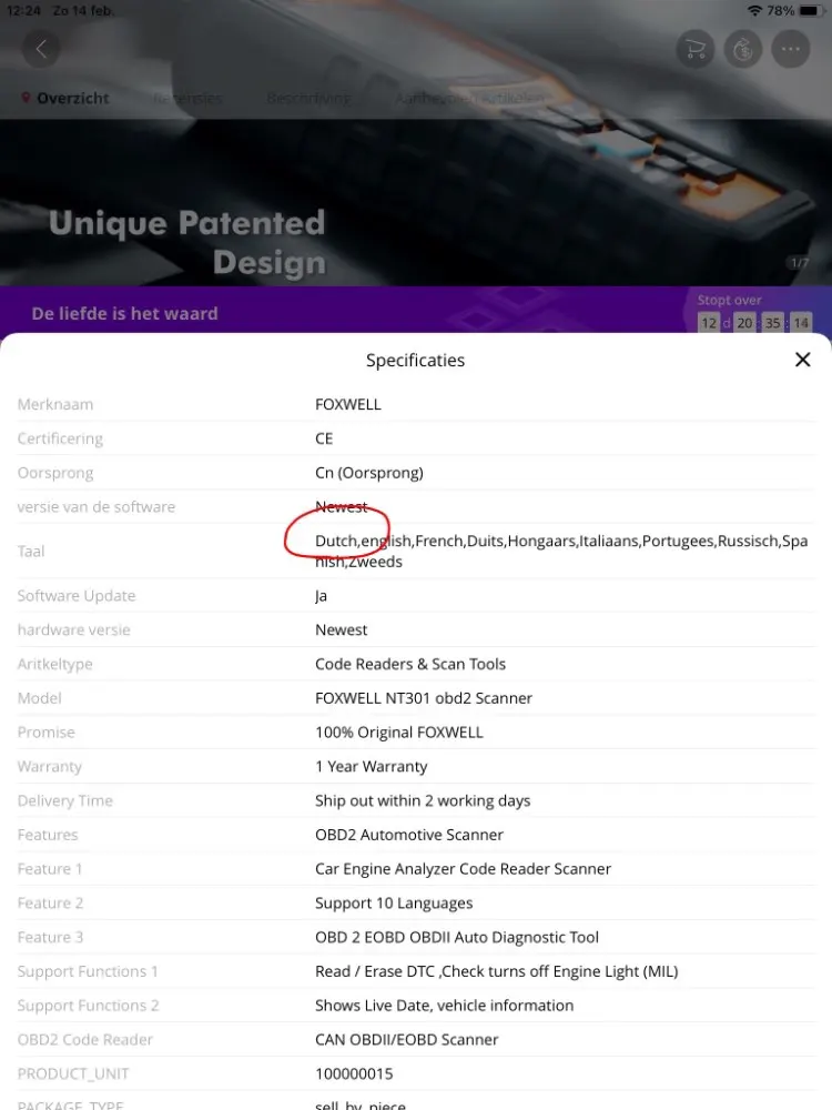К сожалению, не на моем языке, когда это называется указанным, это также сообщено продавцу, но, к сожалению, нет ответа от этого полученного (к сожалению, не на моем языке, хотя это указано в описании)