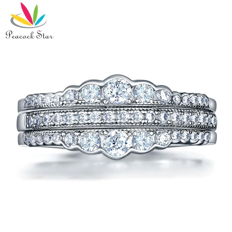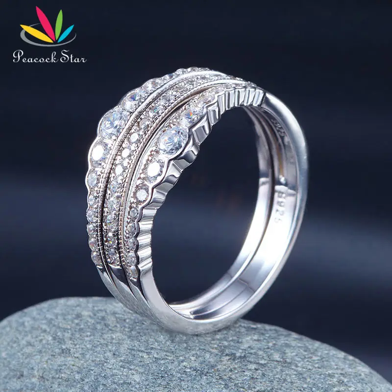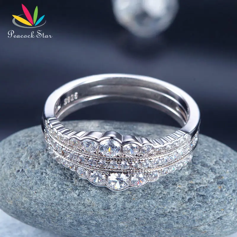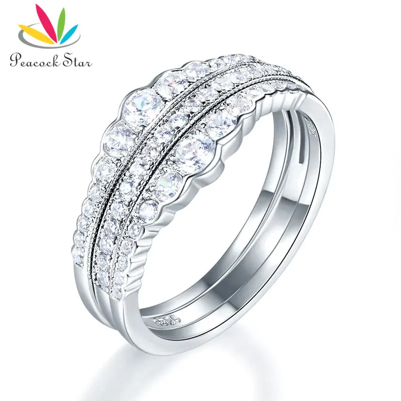 Павлин звезда Твердые 925 пробы Серебряное обручальное кольцо комплект детский комплект одежды из 3 предметов: Юбилей арт-деко Винтаж CFR8270