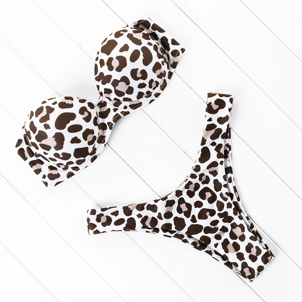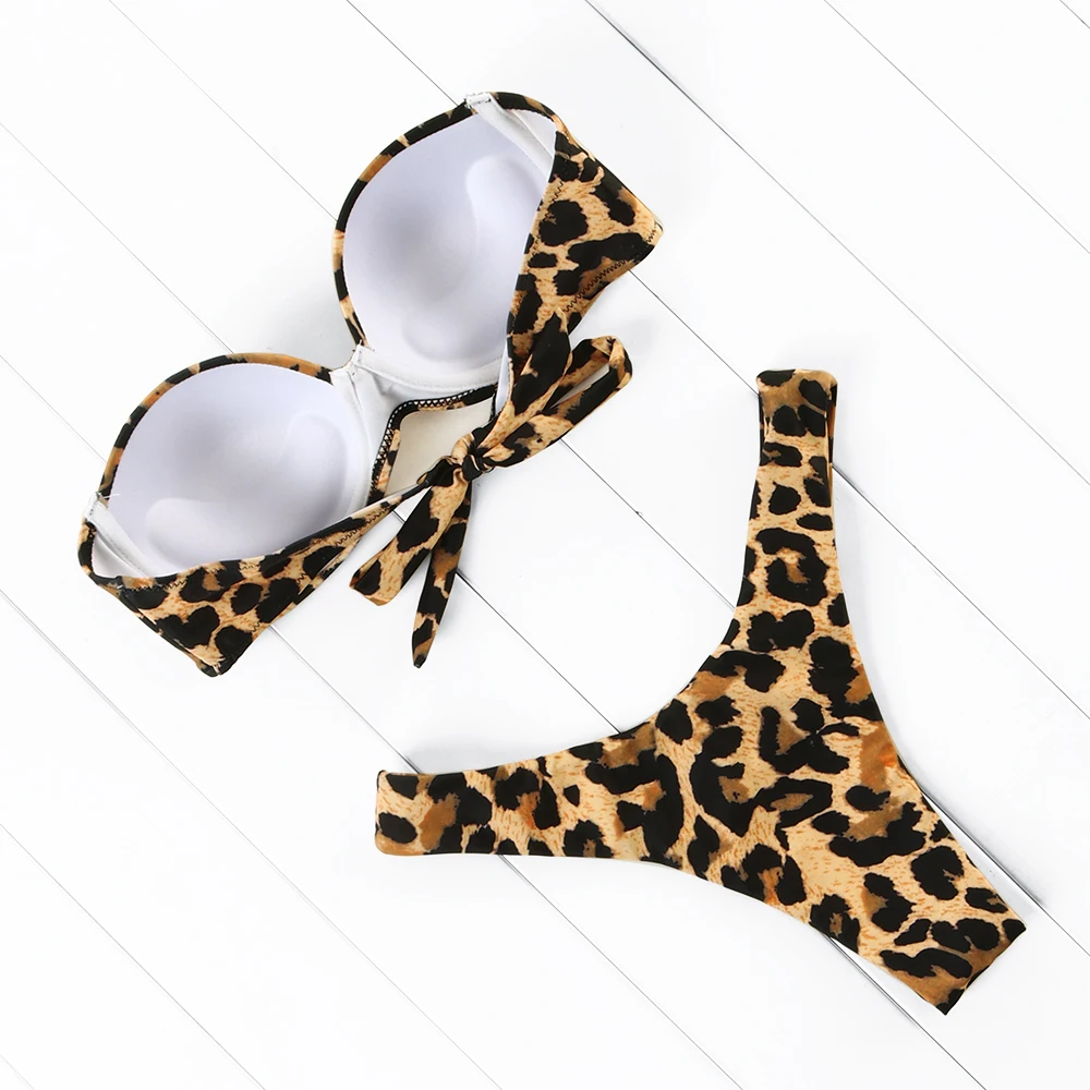 Бикини, сексуальный, 2020, Леопардовый, бандо, бикини, комплект, купальный костюм, одежда для плавания, женский купальный костюм, Maillot De Bain Femme, пуш-ап, бразильское бикини