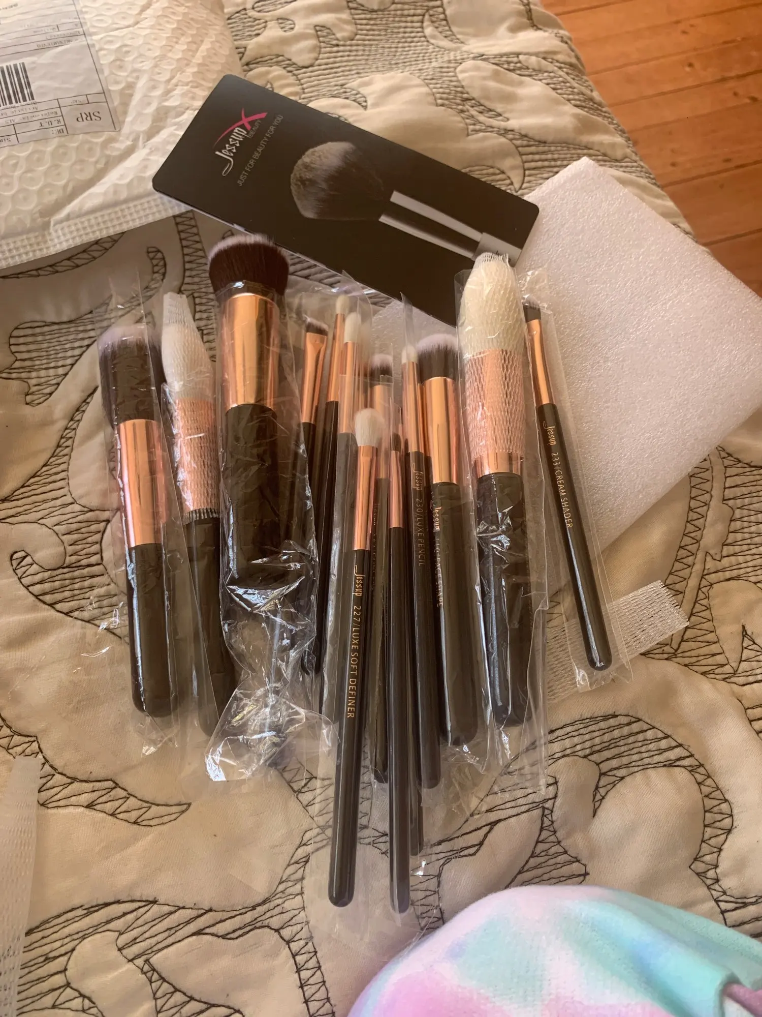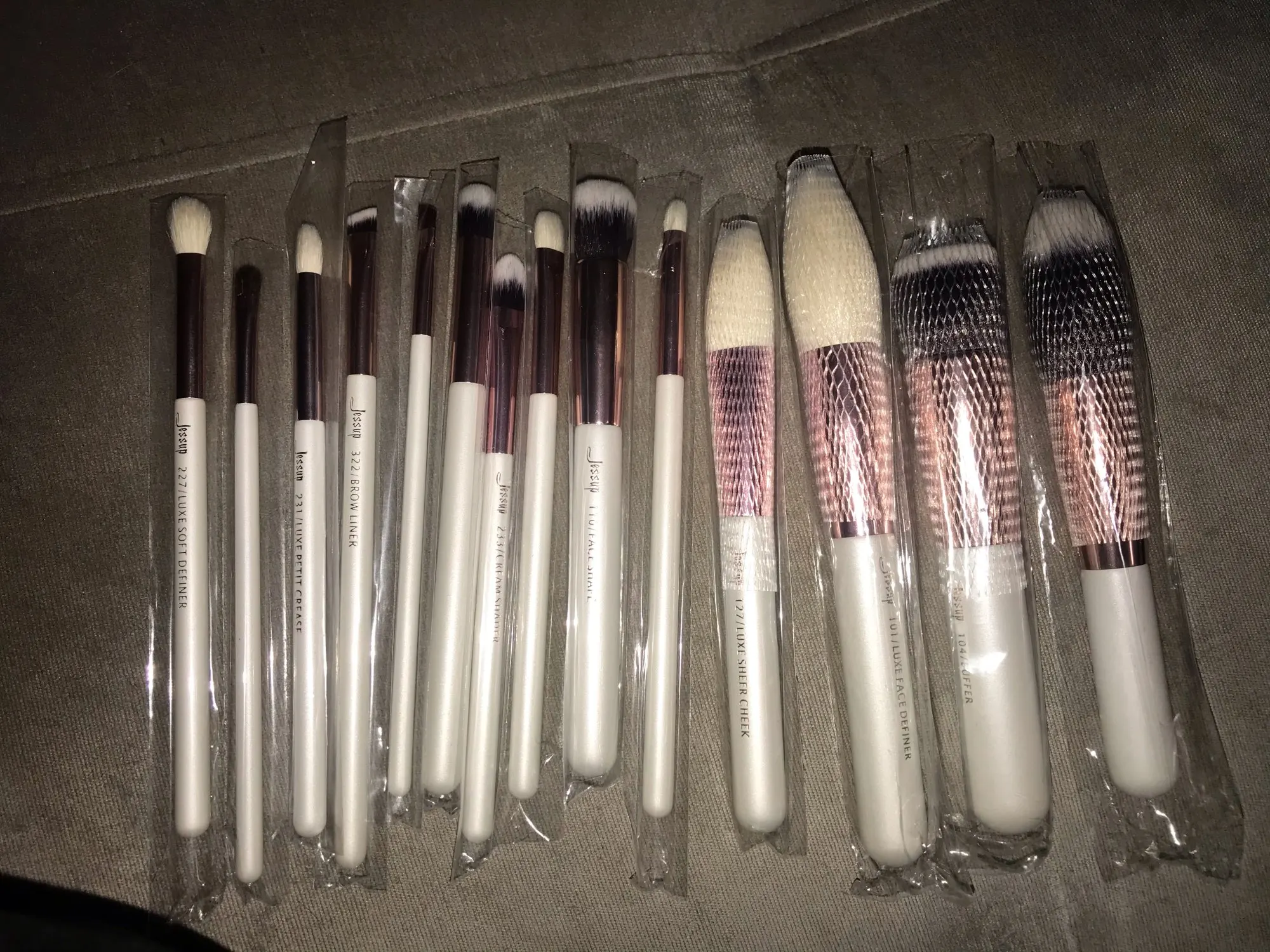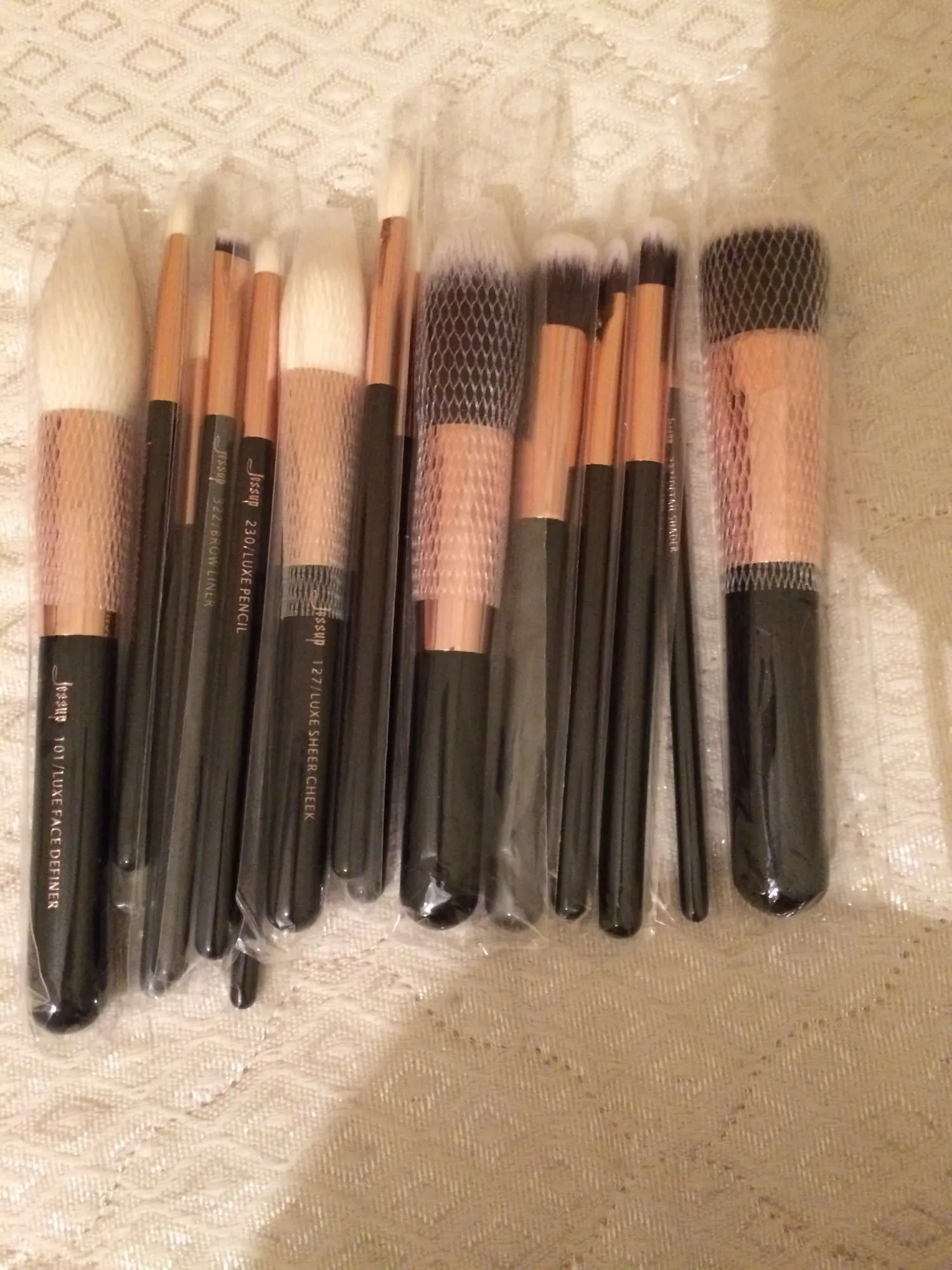 Девоньки, это супер-кисточки. Мягкие, шикарно лежат в руке. Каждая кисточка в индивидуальной упаковке, большие кисти ещё и в сеточке. Чуть позже дополню отзыв, расскажу, какие они в эксплуатации. Продавец общительный, товар отправил мгновенно, положил подарочек, короче оказался милашкой))) Заказала 11.11, забрала на почте 26.12.