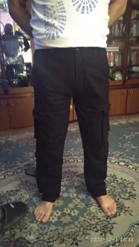 Ткань - реальный хлопок. Пошив качественный, но торчащих ниток не меряно. Крой или пошив не очень удачные, спереди залом - смотрите фото. В принципе не проблема, в движении не видно. (но это мои брюки, у вас будут лучше). Брюки смотрятся хорошо, рекомендую. Размеры соответствуют таблице. Нравится свободный крой, поэтому брал LX, но можно было и L. Продавец отличный, отправил быстро - рекомендую.