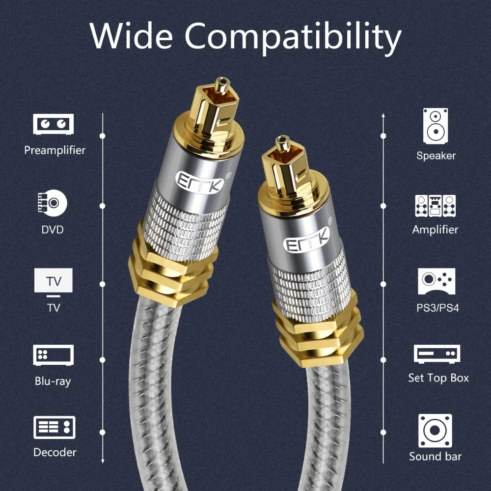 Оптический кабель EMK Digital 5,1 Toslink, оптоволоконный кабель SP...