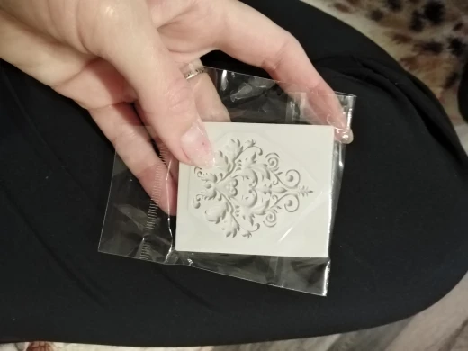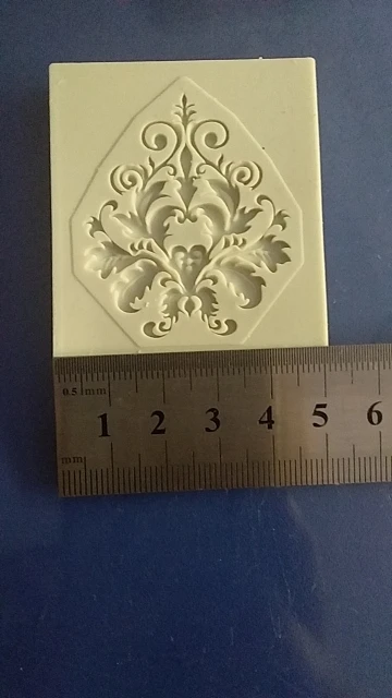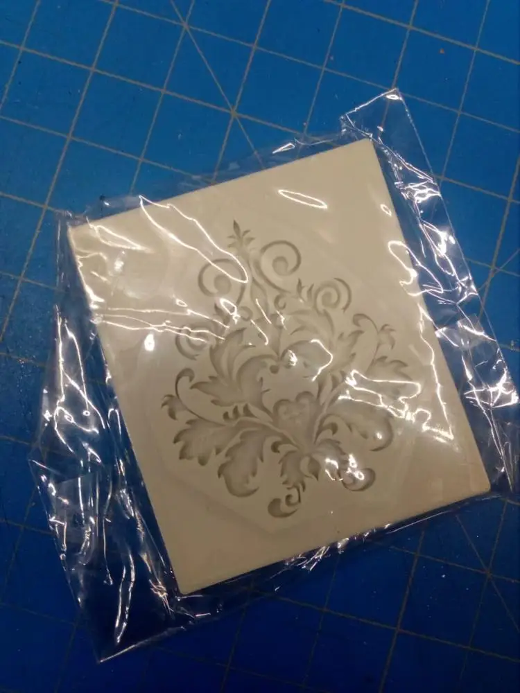 Пришел в светло сером цвете. Довольно мягкий и и липкий силикон. Сам орнамент имеет очень тонкие еле прорезанные места. Небольшой: молд - 5х6см, узор 5х4см.
