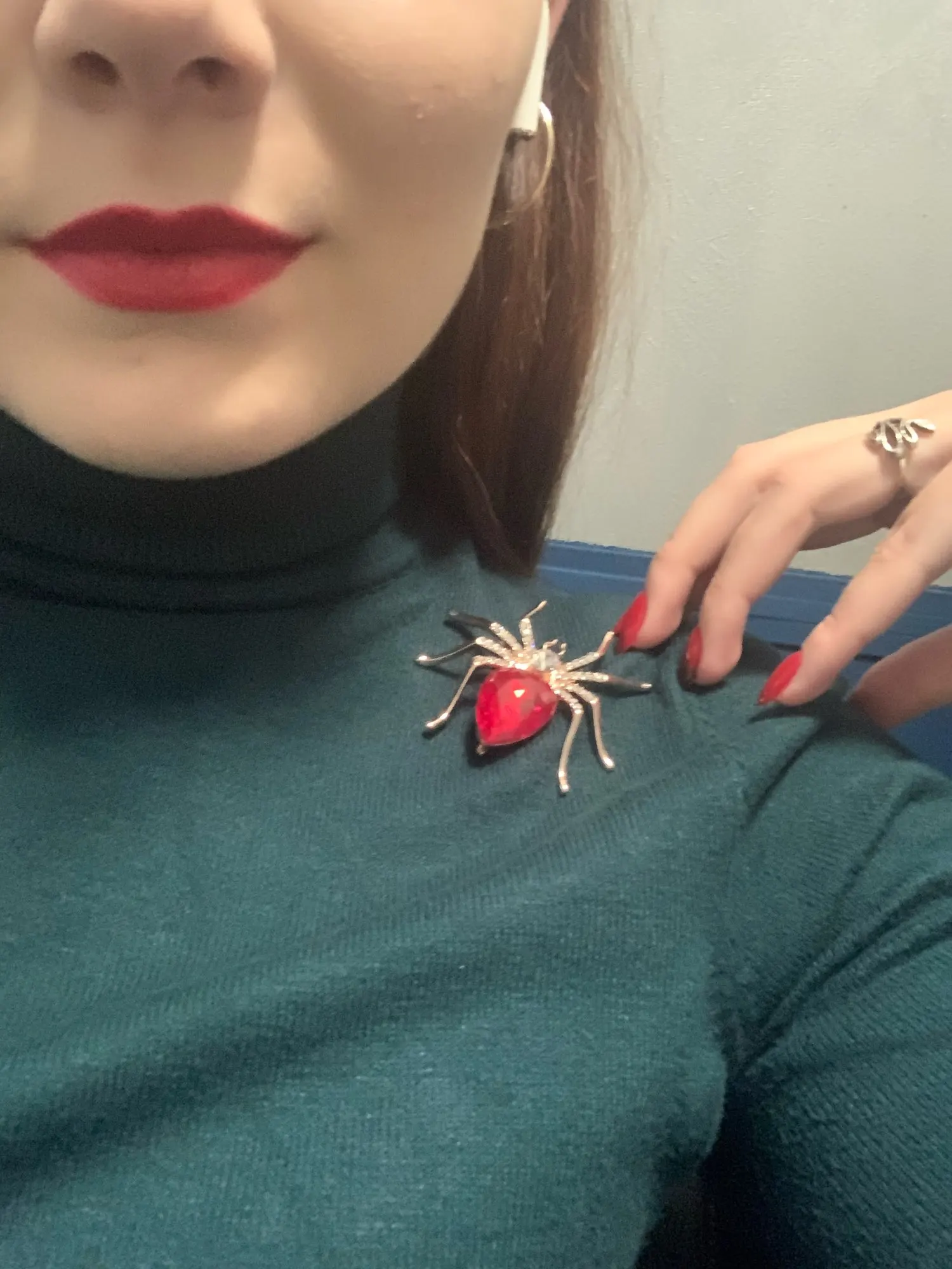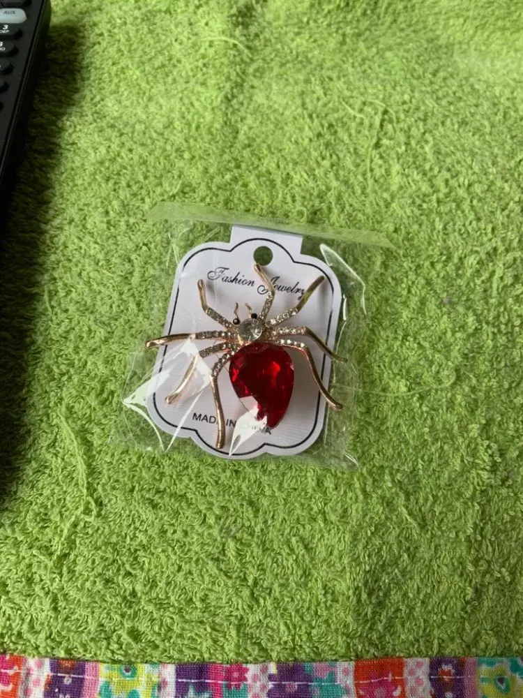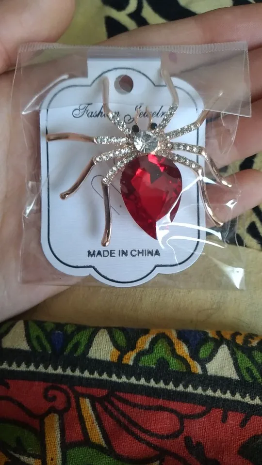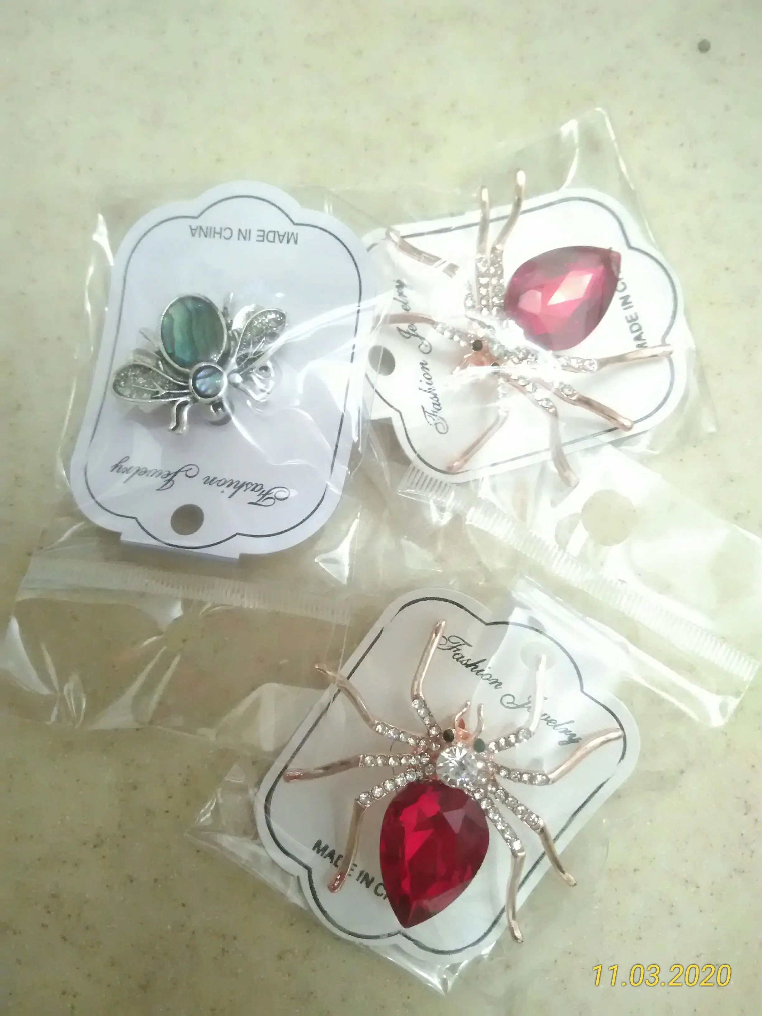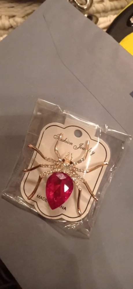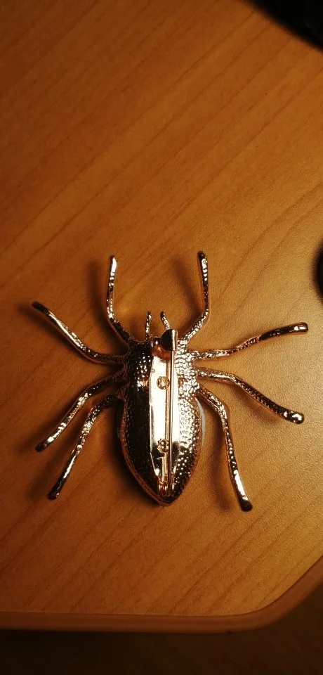 Брошь пришла. Шла почти 2 месяца. Красивая и большая. Стразы все на месте, сколов нет. Стараюсь никогда не брать с позолотой,ну тут решилась из-за маленькой стоимости. Посмотрю,насколько быстро она потемнеет.
