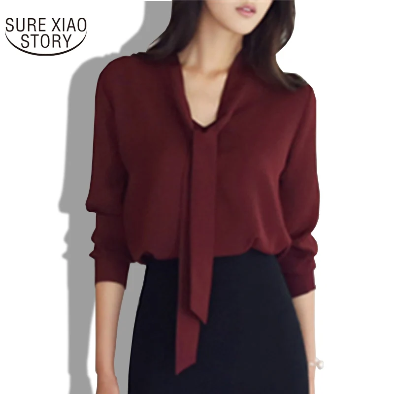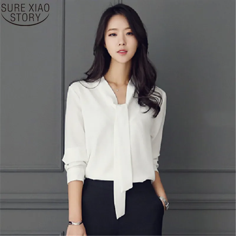 2022 Осенняя Женская одежда с длинным рукавом с галстуком-бабочкой женские рубашки Корейская Свободная шифоновая блузка женская рубашка однотонная блуза 699C 30
