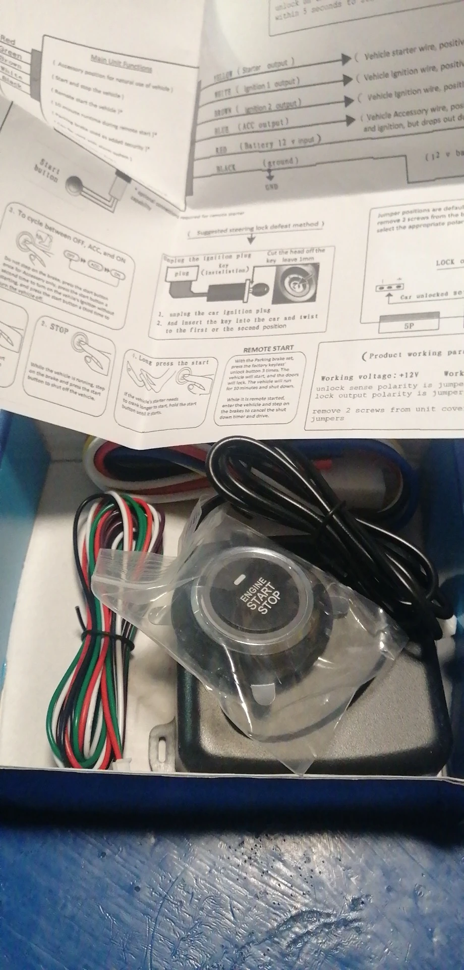 В общем, коробка пришла мятая, все внутренности сохранны. Решил проверить на аккуме с ИБП. Проверил кнопку - работает. Режим автозапуска - работает. Переключение режимов без тормоза - работает. Запуск - работает. Подключу к автомобилю - отпишусь.