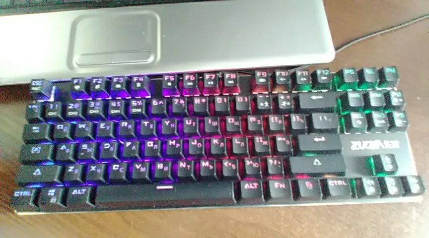 Хорошая клава на красных свичах в подарок положили наклейки русских букв, хотя на клавиатуре есть раскладка. Светится как елка новогодняя, я подсветку отключил. Норм, привез курьер прямо к дому, спасибо.