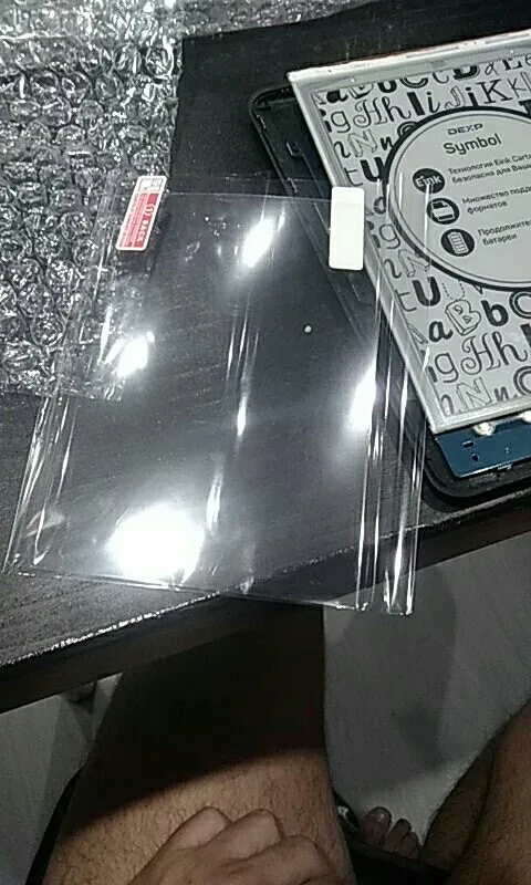 Отличный экран, покупал для Kindle. Подошел, как родной. В комплекте защитная плёночка. И да, упаковка выше всяких позвал. Доставка в Москву полторы недели.