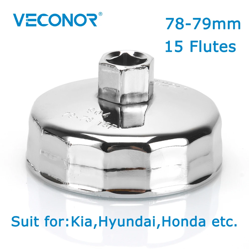 Veconor 1/2 "квадратная Dr. Сталь 78 мм-79 мм масляный фильтр гаечный ключ крышка инструмент для жилья Съемник 15 канавки универсальный для Kia Hyundai Honda Ford Toyota