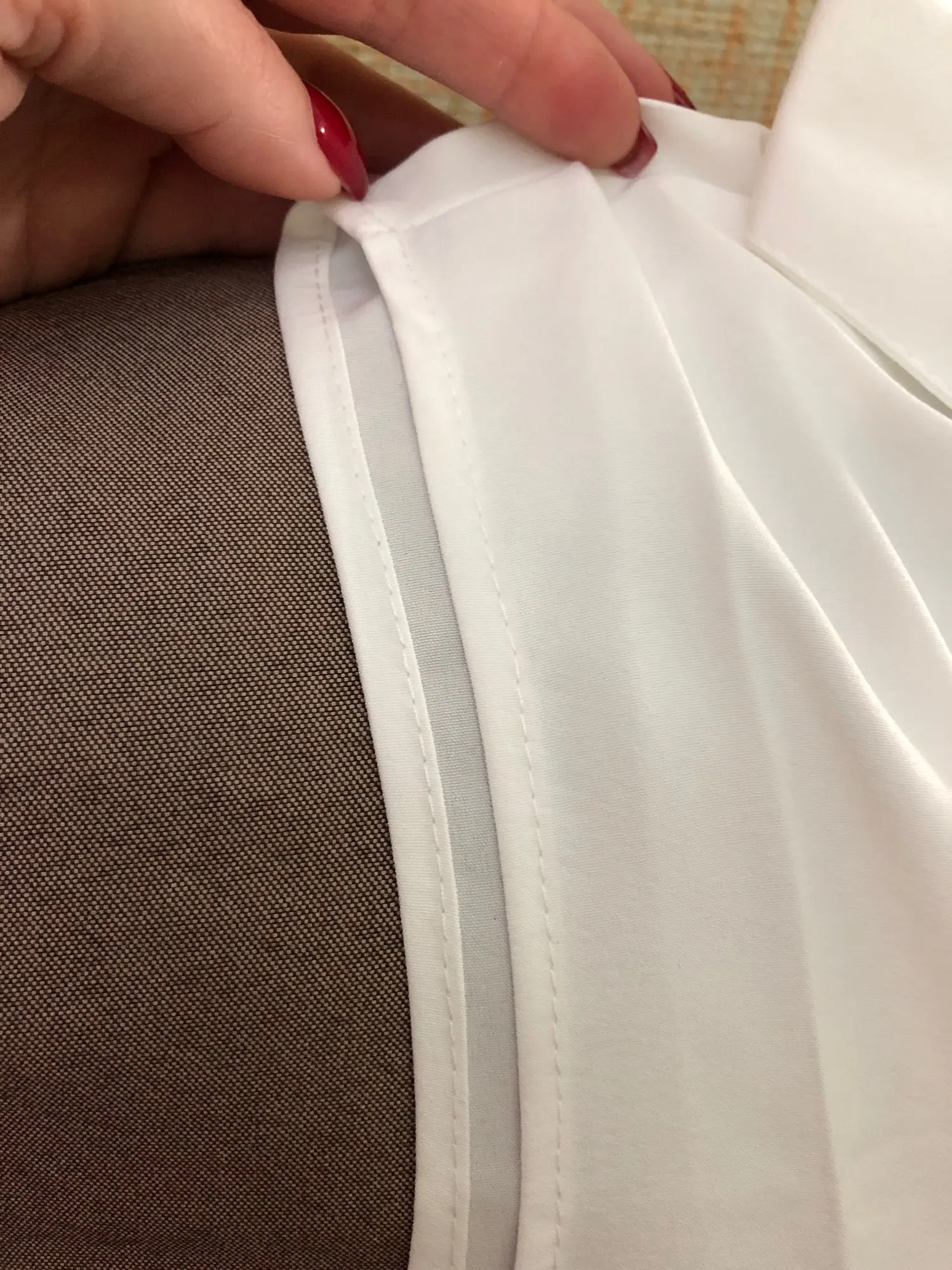 Хорошо, что, если у вас есть грудь, открывается зазоры между кнопками, и это некрасиво. Я рекомендую брать на один размер больше. Ткань хорошая, крутая и немного тянущаяся.
