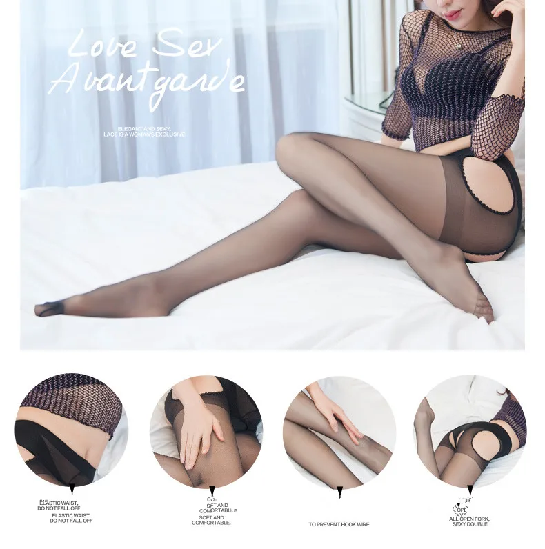 Женские черные сетчатые колготки с открытой промежностью, сексуальные колготки в сетку, летние колготки, нижнее белье BA052