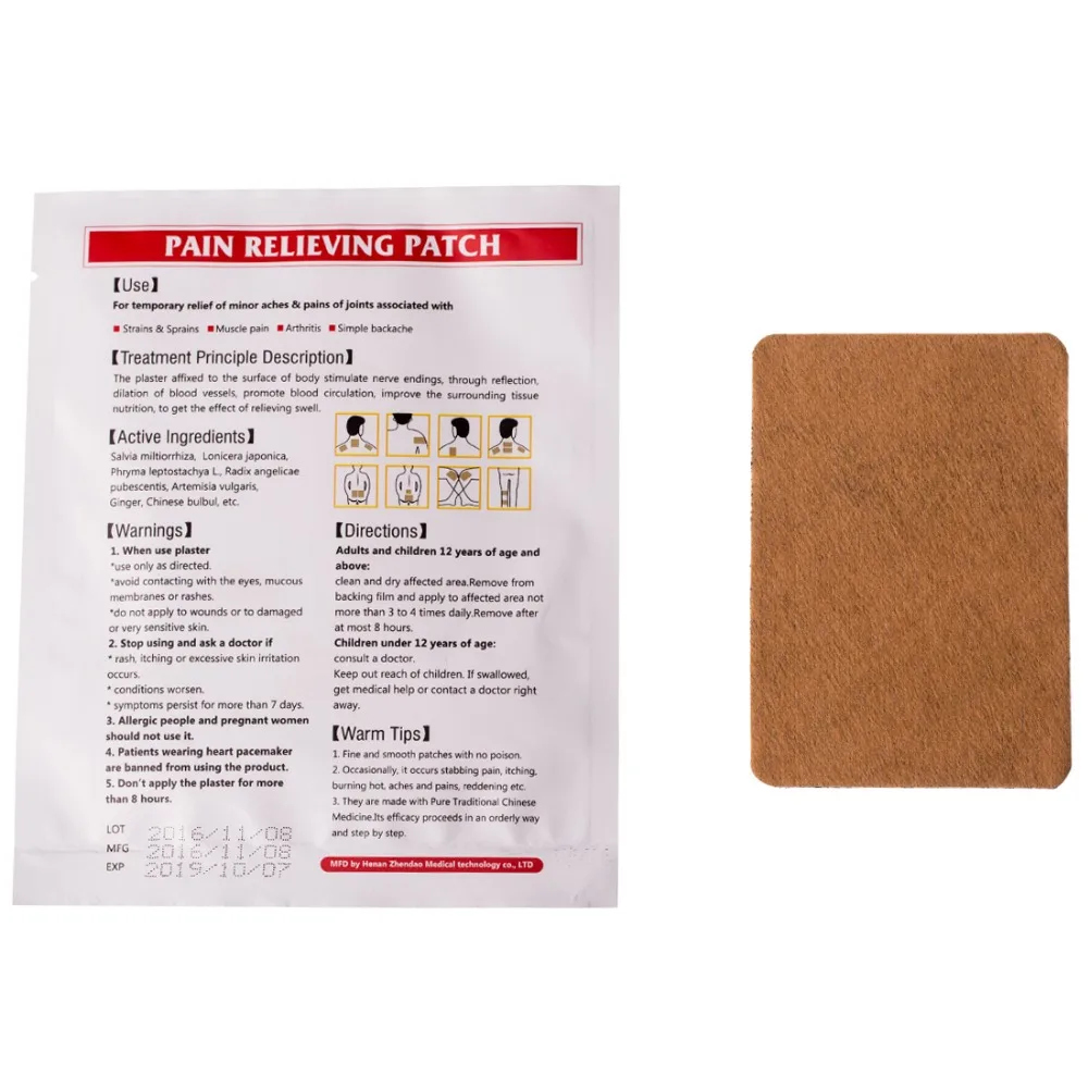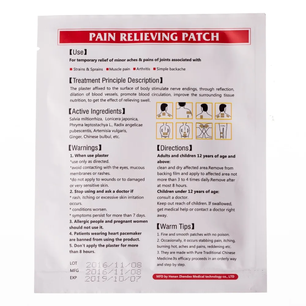 Ингредиенты китайской травой штукатурки 100% натуральные, содержит натуральные растительные экстракты. Может сделать частичную кожу генерировать физическую реакцию для ускорения кровообращения и облегчения боли, для длительного облегчения мышечной усталости, поясницы, боли в спине, твердые плечи и артрит.