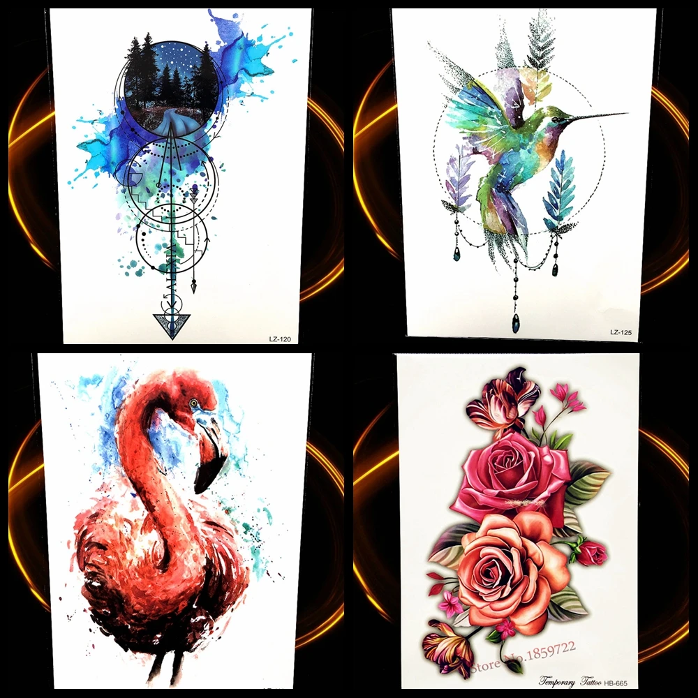 1 шт акварельный компас временные татуировки наклейки Летающие птицы Водонепроницаемая татуировка для женский боди-арт рука цветные флэш-тату Шея ноги