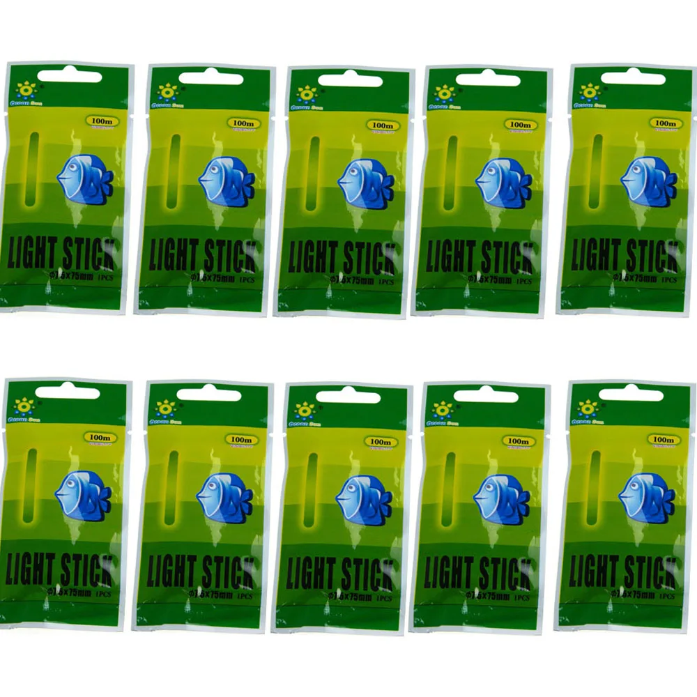 10 мешков 7.5X75MM Рыбалка светящаяся палочка трубка палочка зеленый Флуоресцентный светильник палка ручной стабилизатор для рыбалка поплавок ночь поплавки люминесцентное свечение палочки