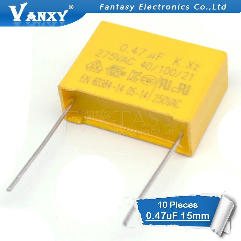 10 шт. 470nF конденсатор с алюминиевой крышкой, X2 конденсатор с алюминиевой крышкой, 275VAC шаг 15 мм X2 полипропиленовый пленочный конденсатор с алюминиевой крышкой, 0,47 мкФ