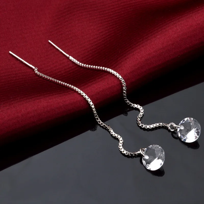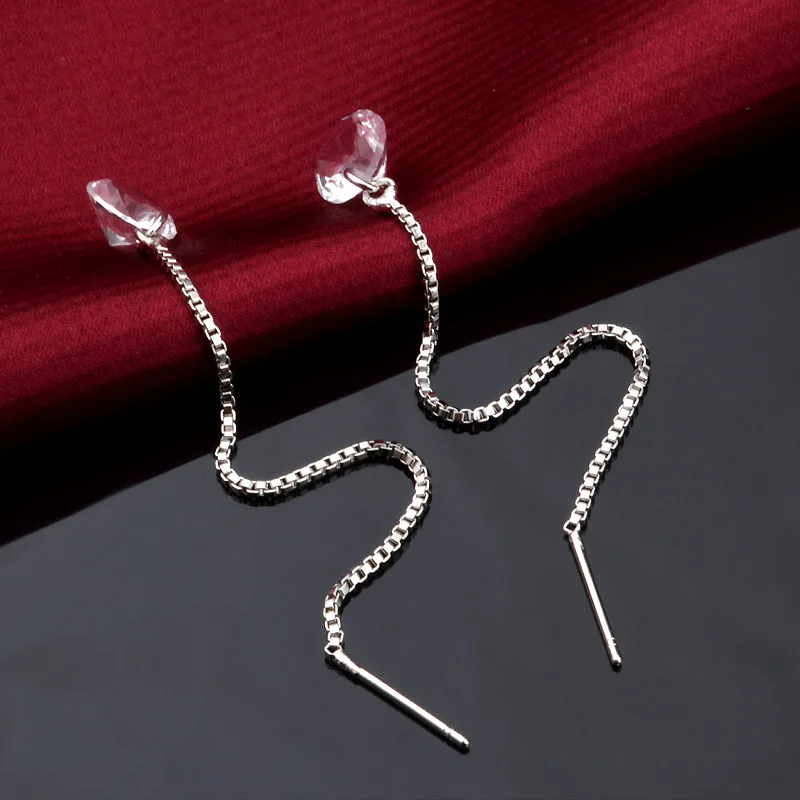 Женская Длинная кисточка-сережка, ювелирное изделие из фианита в форме пластины серебряного цвета, Ювелирное Украшение