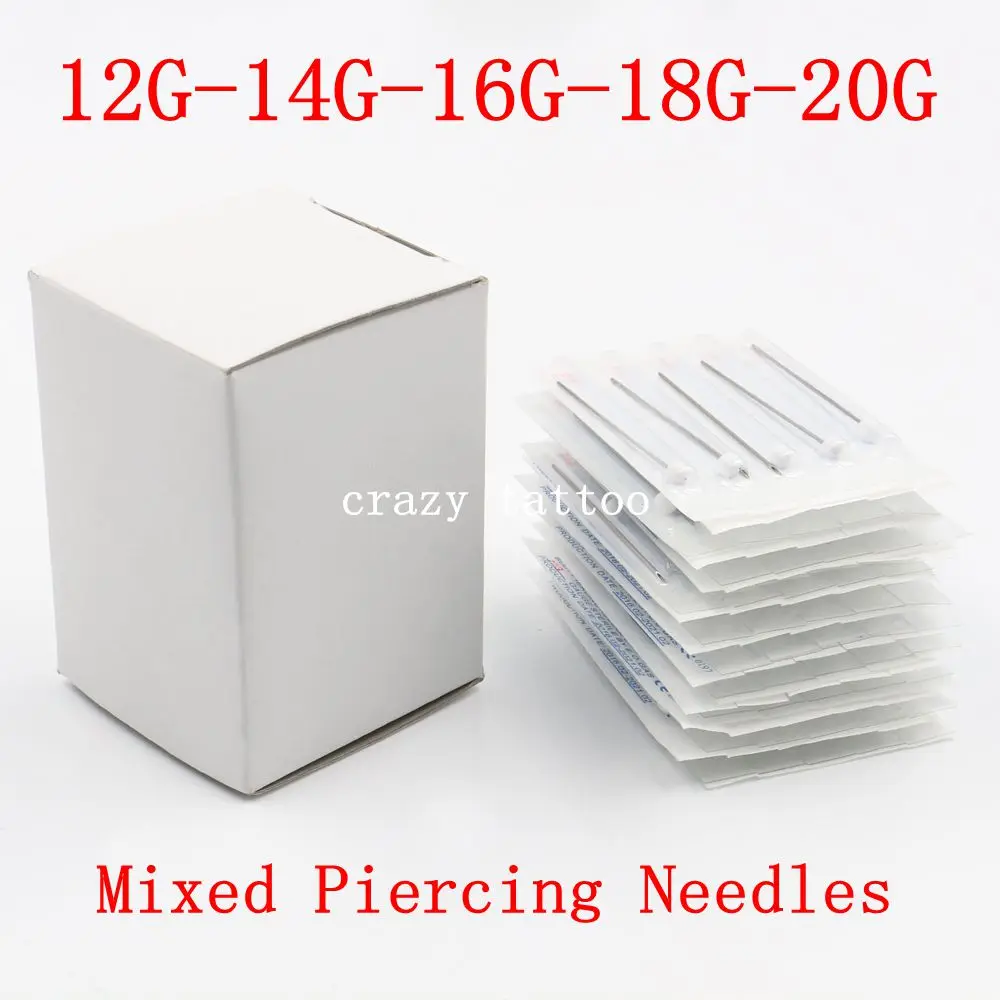 100 шт. иглы для пирсинга смешанные размеры 12 г 14 г 16 г 18 г 20 г стерильные иглы для пирсинга тела для тату Перманентный макияж Бесплатная доставка