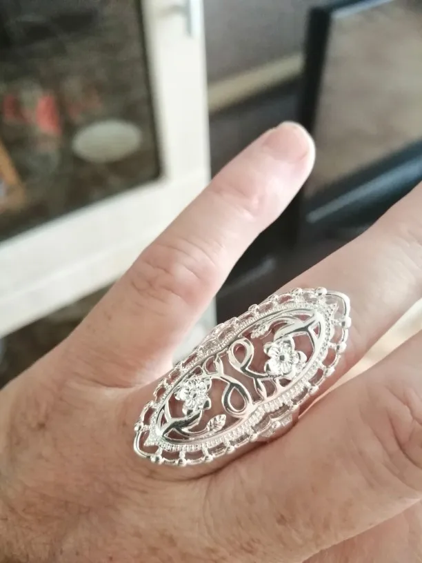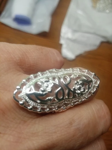 По мне так дешёвая штамповка. Кольцо неестественно светлое, на серебро и близко не похоже. Заказала 8 на свой 18 размер, маловато.
